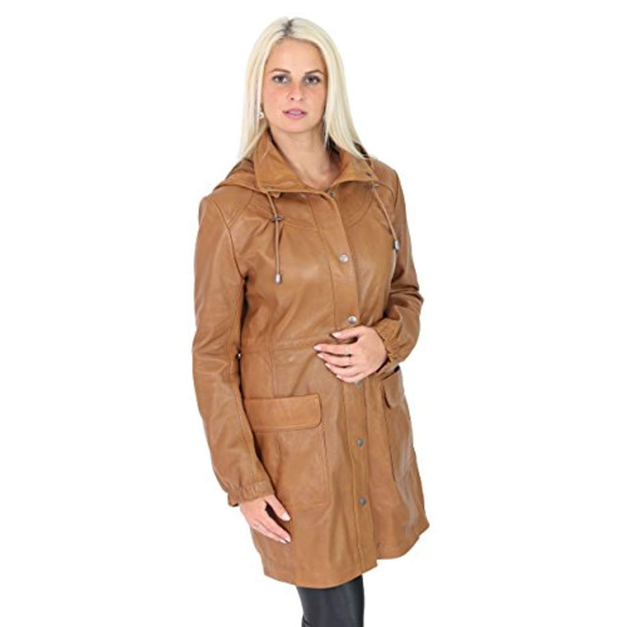 Alternativen zu dem Ledermantel (Damen) A1 FASHION GOODS Damen Duffle Leder Mantel Hellbraun 3/4 Lange Abnehmbare Kapuze klassische