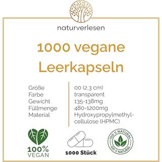 - 1000 Stück vegane Leerkapseln Größe 00ca. 17 €0,02 €/StückGratis Premiumversand mit Amazon Prime
