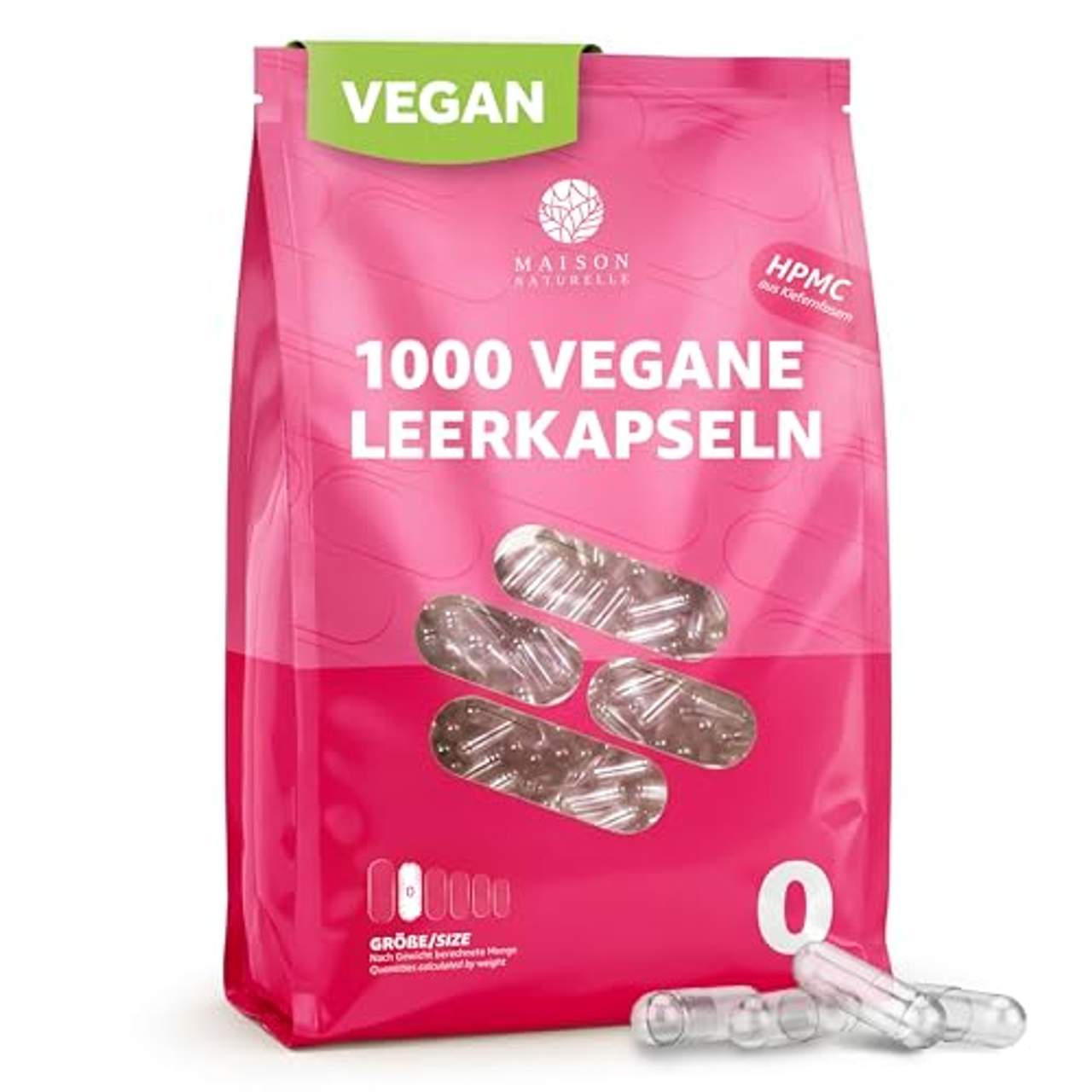 Maison Naturelle Vegane Leerkapseln Gr ist eine Marke für leere Kapseln, die sich perfekt zum Befüllen von Nahrungsergänzungsmitteln, Kräutern und natürlichen Substanzen eignen. Sie sind 100 % vegan, gentechnikfrei, Project V-Label, Kosher und Halal zertifiziert. Die Kapseln haben eine Größe 0, die je nach Dichte 270-680 mg Pulver aufnehmen können. Sie werden aus Kiefernfasern und Hydroxypropylmethylcellulose hergestellt und regelmäßig von Labors getestet, um sicherzustellen, dass sie frei von Verunreinigungen wie Schwermetallen, mikrobieller Kontamination und Dioxinen sind. Außerdem sind sie frei von Aromen, Farbstoffen, Stabilisatoren, Gelatine, Laktose, Gluten, Konservierungsmitteln und GVO.