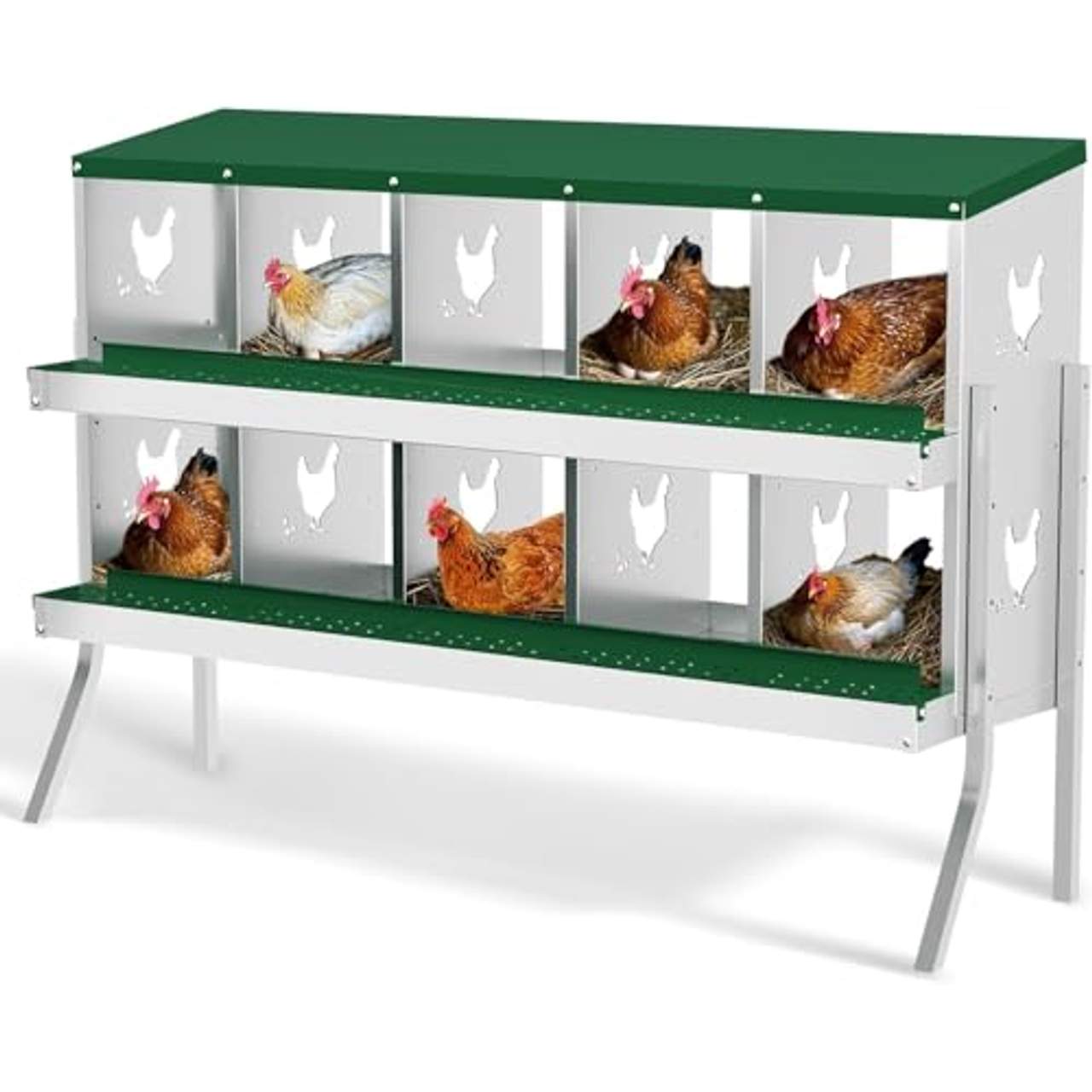 - Langlebige Struktur: Der "Hühner Legenester 10 Abteile" besteht aus hochfestem, verzinktem Stahlblech und ist so gebaut, dass er den rauen Bedingungen im Freien standhält, was ihn zu einer zuverlässigen Wahl für Geflügelhalter macht. Seine Haltbarkeit übertrifft die von zerbrechlichen Kunststoffalternativen, was eine lange Lebensdauer garantiert und den Bedarf an häufigem Austausch reduziert. Das robuste Material ist nicht nur sehr rostbeständig, sondern trägt auch zur allgemeinen Stabilität und Sicherheit deiner Hühner bei. Daher können Landwirte mit Zuversicht in dieses Produkt investieren, denn sie wissen, dass es den unterschiedlichsten Wetterbedingungen standhält und ihre Tiere schützt.