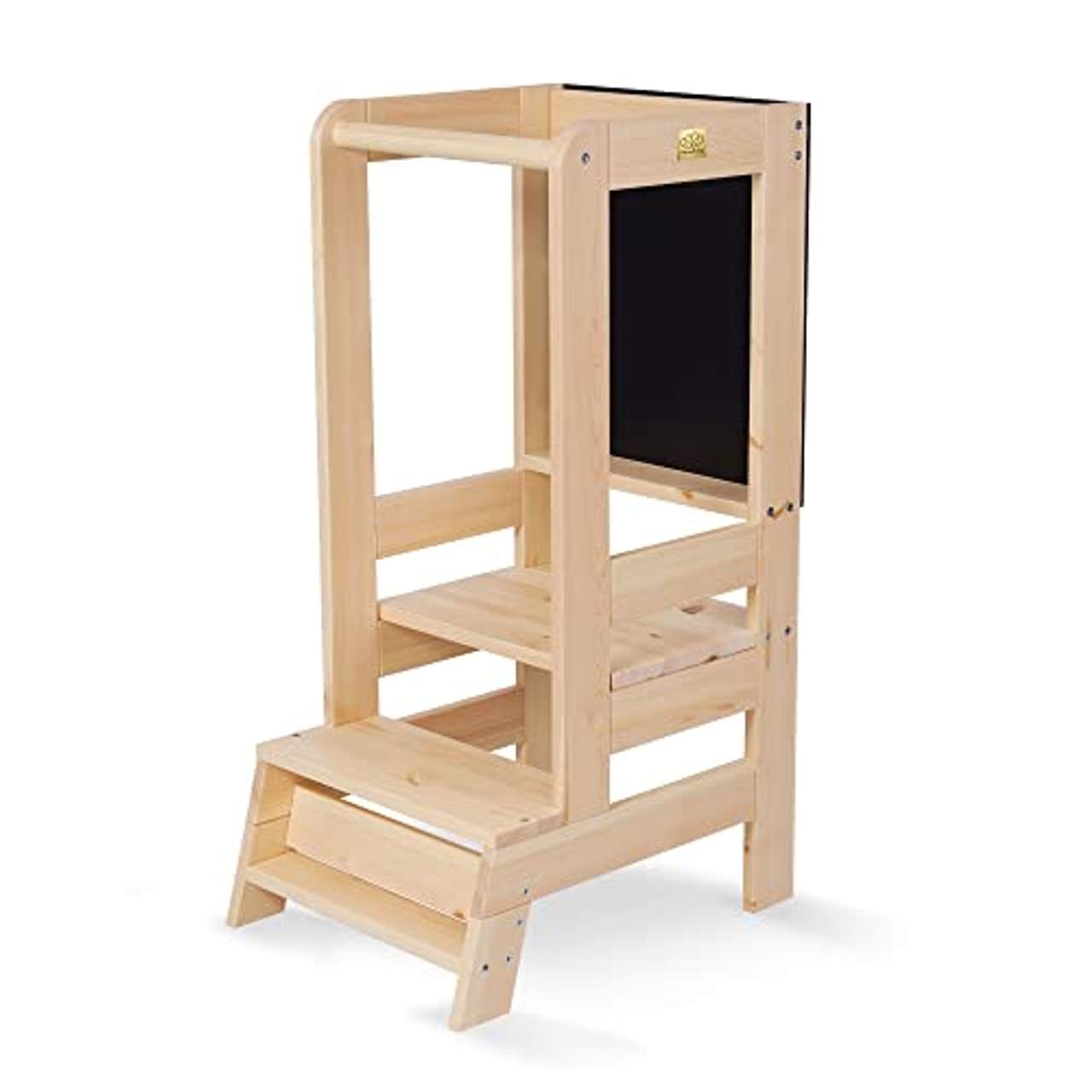 MEOWBABY Lernturm für KinderMeowBaby Küchenhelfer Es handelt sich um eine Plattform, die es dem Kind ermöglicht, an Aktivitäten im Zusammenhang mit der Zubereitung von Mahlzeiten teilzunehmen. Normalerweise haben Kinder nur begrenzten Zugang zu einer Küchentheke, einem Waschbecken oder einem Tisch.Mit einer Küchenplattform beobachtet das Kind nicht nur die weiteren Schritte der Geschirrzubereitung, sondern beteiligt sich auch aktiv an der Zubereitung des Geschirrs, dem Abdecken des Tisches oder dem Geschirrspülen. Das Design des Küchenhelfers ist stabil und ermöglicht die Höhenverstellung der Plattform und die Anpassung an die Größe der Kindersicherung, was sich direkt auf die Sicherheit des Kindes auswirkt und ihm das Auf- und Absteigen ohne fremde Hilfe ermöglicht.Der Küchenhelfer MeowBaby ist eine Kombination aus sicherer Montagetechnik, stabiler Konstruktion und Leichtigkeit der Form mit unkonventionellem und dennoch minimalistischem Design. Spezifikation: Material: Kiefernholz Höhenverstellbare Plattform mit 3 Varianten (20 – 33 – 46 cm vom Boden aus gezählt) Für die Höhenverstellung sind weder Geräte noch Kraft erforderlich – bewegen Sie die Plattform einfach an die ausgewählte Stange Maße: Gesamthöhe: 90 cm Breite: 39 cm