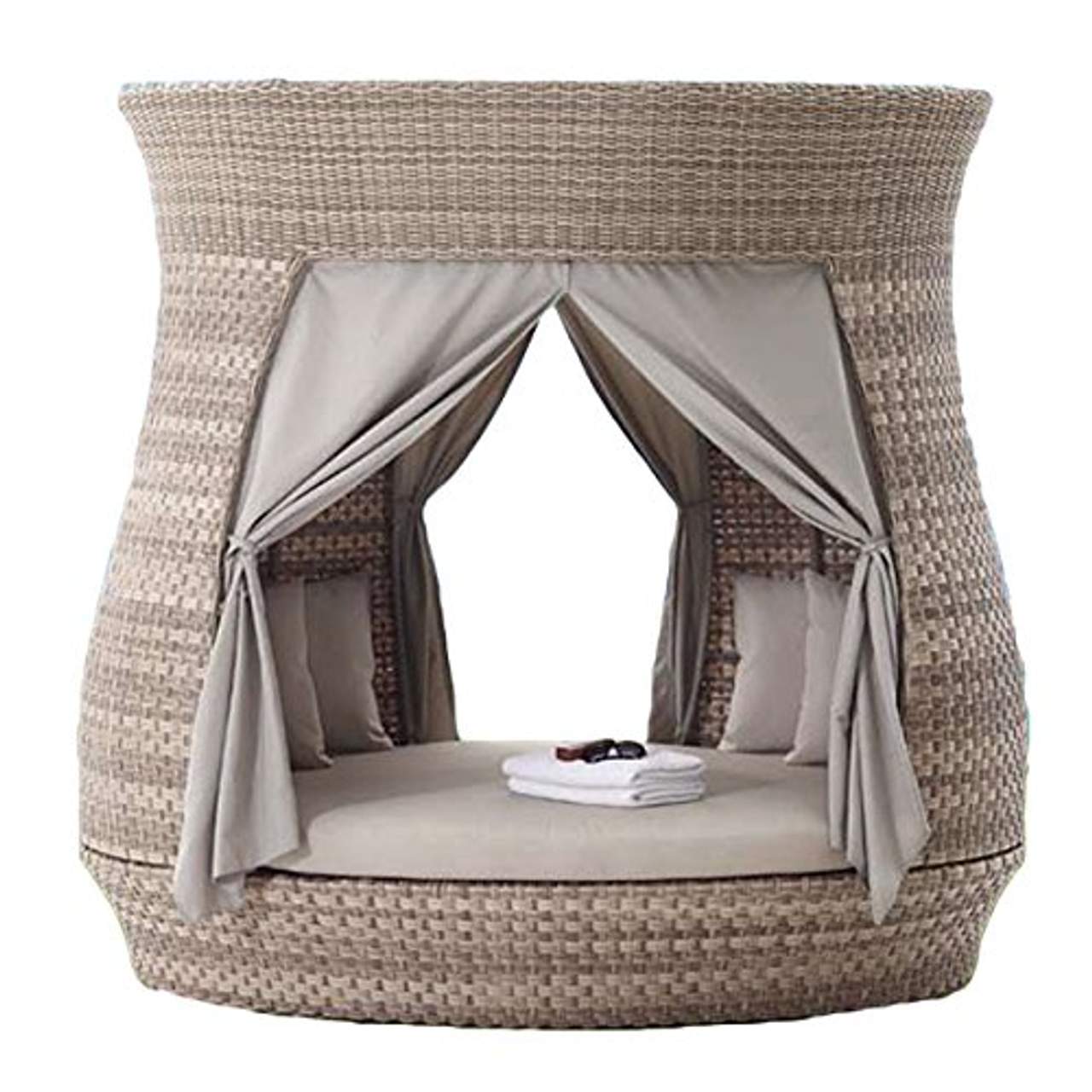 - Geräumiges Design: Mit ihren großzügigen Abmessungen und dem durchdachten Design bietet diese Liegeinsel viel Platz für zwei Personen zum bequemen Entspannen. Die Liegefläche wird durch abnehmbare Vorhänge, die für mehr Privatsphäre oder Schatten sorgen können, zusätzlich aufgewertet.