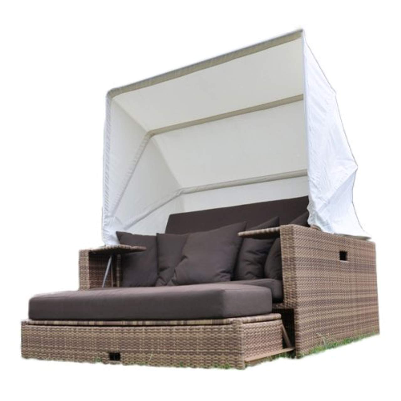 Eine moderne Version des Strandkorbs: Polyrattan Liegeinsel Beach Lounge Mixed Beige Flachgeflecht