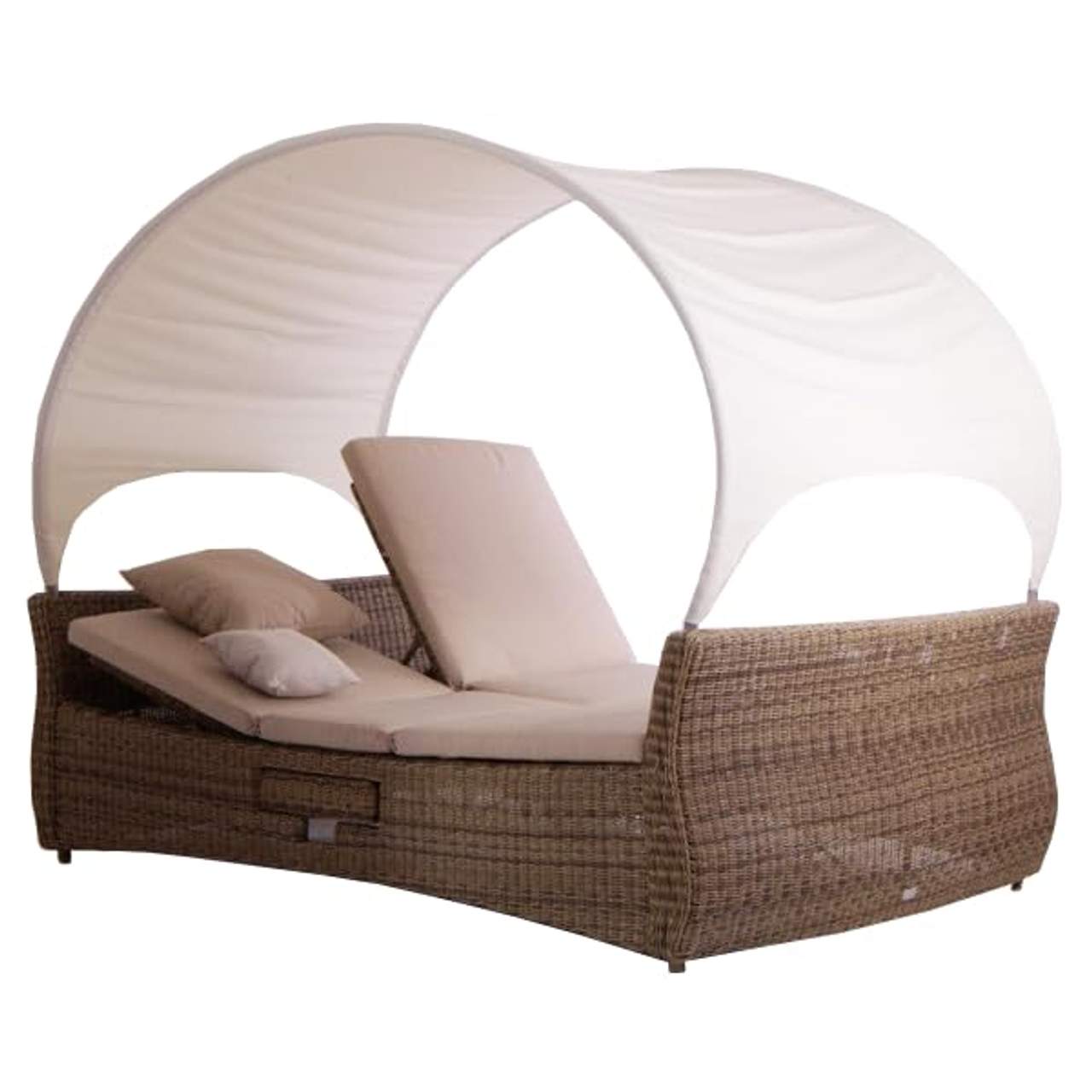 Wird die Sonnenliege Rantum Double Sunlounger Cubu Cream Domus Ventutes Polyrattan mit einem Sonnendach geliefert, das vor den Sonnenstrahlen schützt?