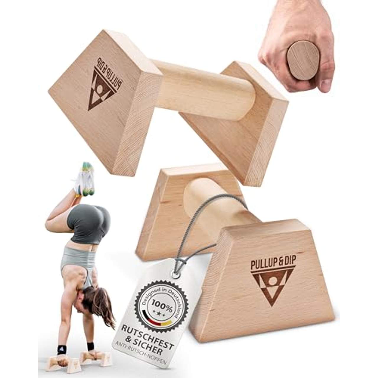 PULLUP & DIP Liegestützgriffe sind gelenkschonende runde Holzgriffe, robuste Stahlfüße und ein rutschfester Buchenholzgriff. Er hilft, den Oberkörper mit Übungen wie verschiedenen Liegestützen und Dips zu stärken. Außerdem verfügt er über spezielle Anti-Rutsch-Pads, die den Boden schützen und für einen sicheren Stand sorgen. Zum Lieferumfang gehört ein kostenloses eBook mit 37 Übungen. Das Gerät hat ein attraktives, handliches Design, das leicht in den Rucksack passt.