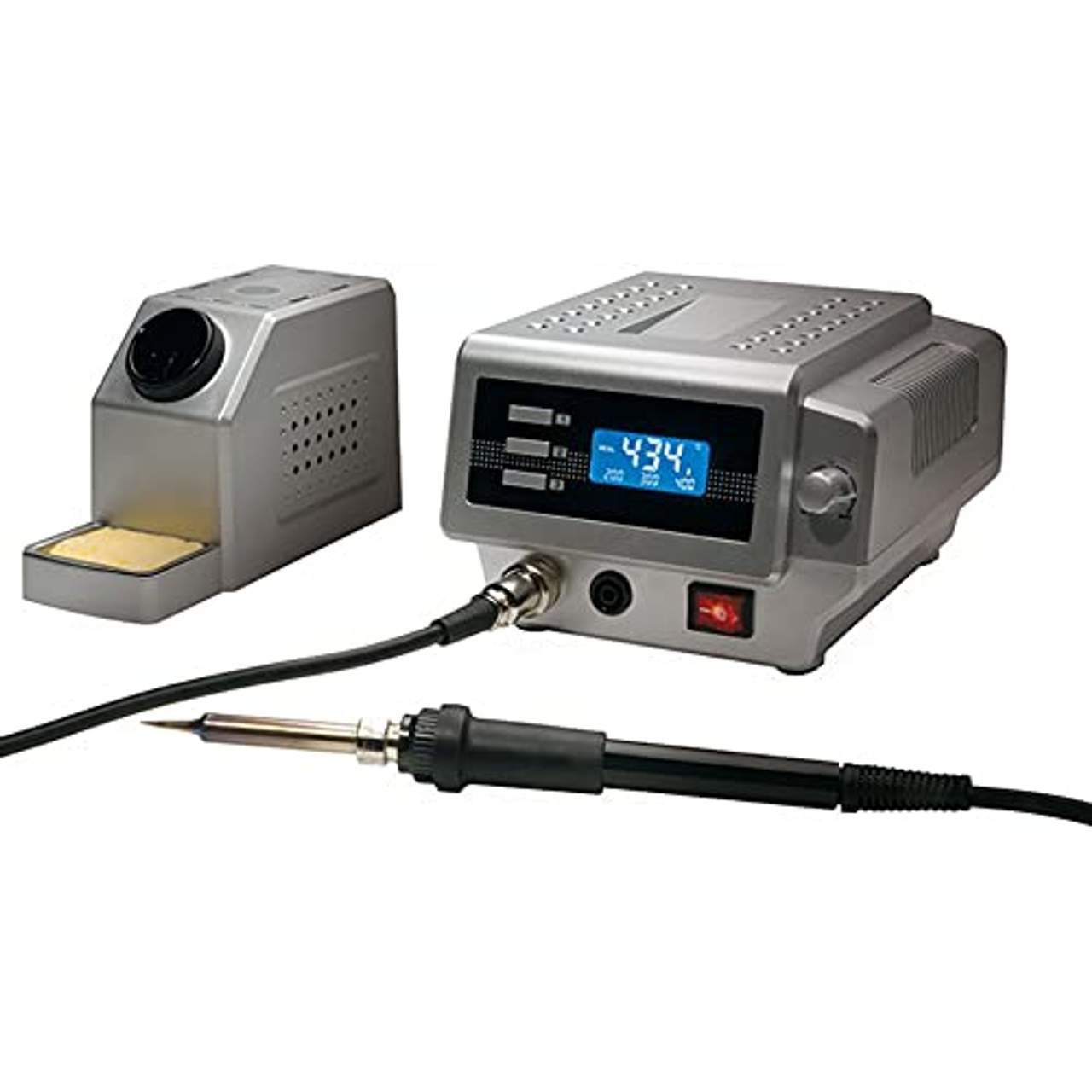 - Leicht und bequem: Die ELV AT-80D Lötstation wird mit einem leichten 24-V-Lötkolben mit Schnellwechsel-Lötspitze (Schraubhülse) geliefert. Dadurch ist sie leicht zu transportieren und an verschiedenen Orten zu verwenden, während sie auch beim Wechsel der Lötspitze oder bei der Arbeit mit verschiedenen Materialien oder Bauteilen bequem ist. Zusätzlich ist eine abnehmbare Lötkolbenablage mit Schwamm im Lieferumfang enthalten, die für zusätzlichen Komfort sorgt, wenn die Station in verschiedenen Positionen oder Winkeln verwendet wird