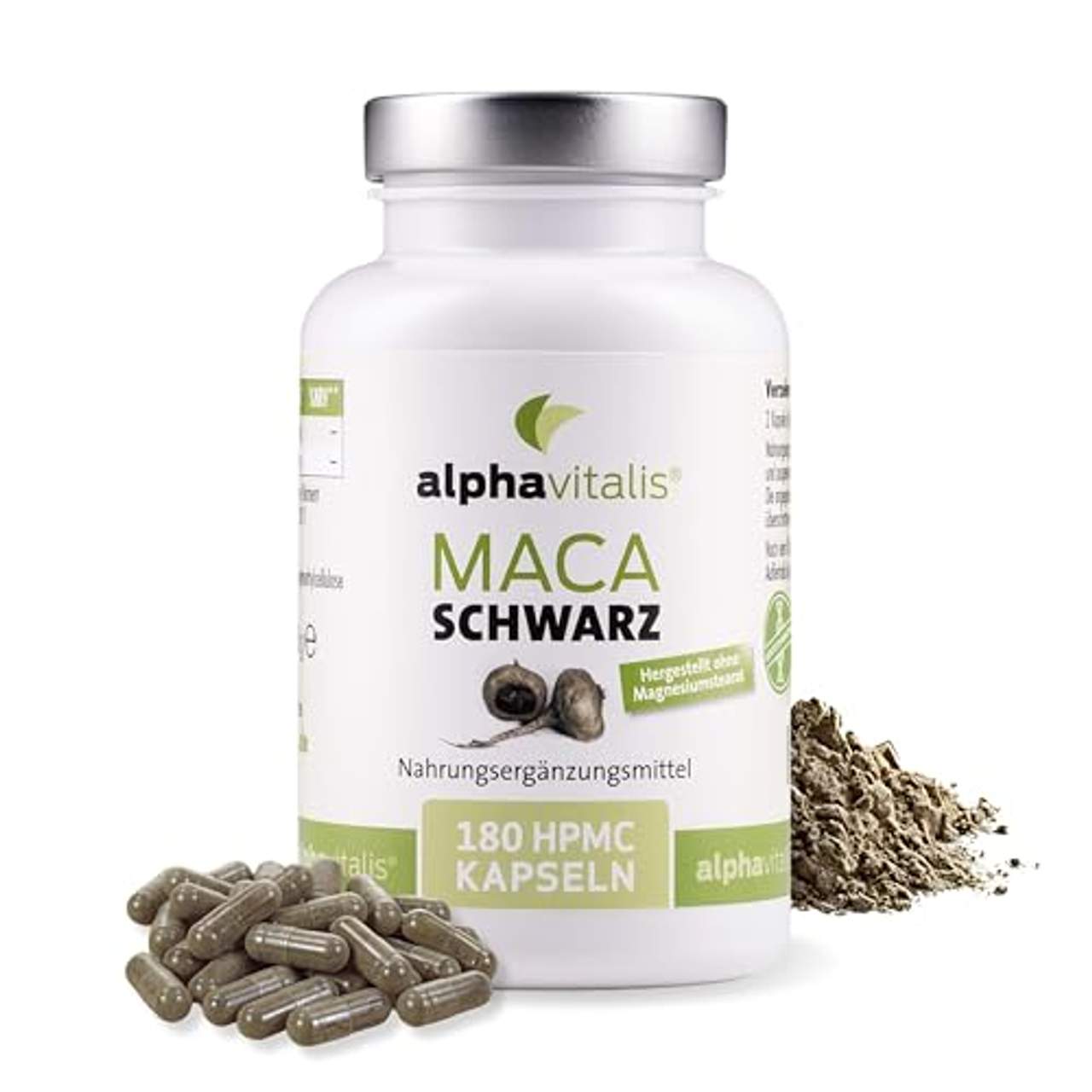Maca Schwarz 4000 mg je Tagesdosis- 180 Maca KapselnMaca Extrakt vegan, hochdosiert und ohne Magnesiumstearat Spezieller und hochdosierter 4:1 Maca Extrakt aus schwarzem Maca • Das Original aus Lepidium meyenii in bester Qualität Beliebtes Nahrungsergänzungsmittel insbesondere für Männer im Alter 100% vegan, inklusive der Kapselhülle Ohne Magnesiumstearat Maca Schwarz 4000 von alphavitalis bietet Ihnen eine außergewöhnlich hohe Dosierung mit 500 mg 4:1 Extrakt pro Kapsel.Dies bedeutet eine viermal höhere Konzentration der wertvollen Inhaltsstoffe im Vergleich zu herkömmlichem Maca-Pulver. Die Wurzel der in den Anden beheimateten Pflanze Lepidium meyenii, auch Maca genannt, hat eine lange Geschichte als geschätztes Nahrungsmittel der Inkas.Sie enthält Aminosäuren; Kohlenhydrate, Stärke; Mineralstoffe, Vitamine und Antioxidantien.