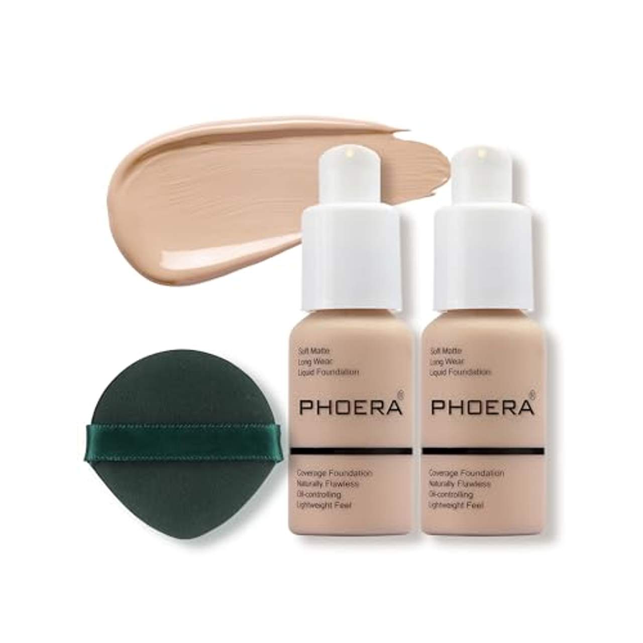 Die 2 Stück Phoera Foundation bietet eine volle Deckkraft, d.h. sie kann Hautunregelmäßigkeiten wie einen ungleichmäßigen Hautton und dunkle Augenringe effektiv korrigieren und perfektionieren. Sie sorgt für ein nahtloses und makelloses Finish und verleiht deinem Teint ein natürliches und strahlendes Aussehen.