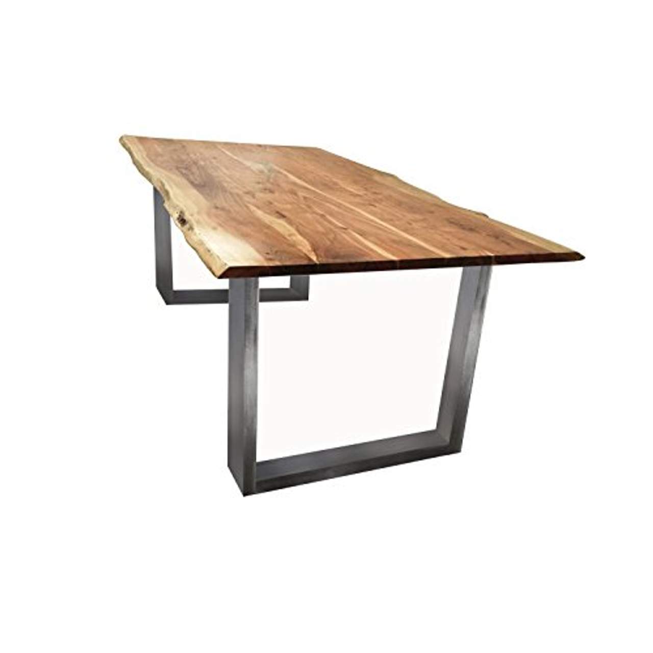 Das Gestell dieses außergewöhnlichen Esstisches besteht aus Stahl und bietet zuverlässigen Halt für die massive Akazienholz-Tischplatte. Mit einer Rahmenbreite von 74 cm lenkt die Metallkonstruktion nicht von der eleganten Holztischplatte ab, sondern ergänzt sie und sorgt für Stabilität.