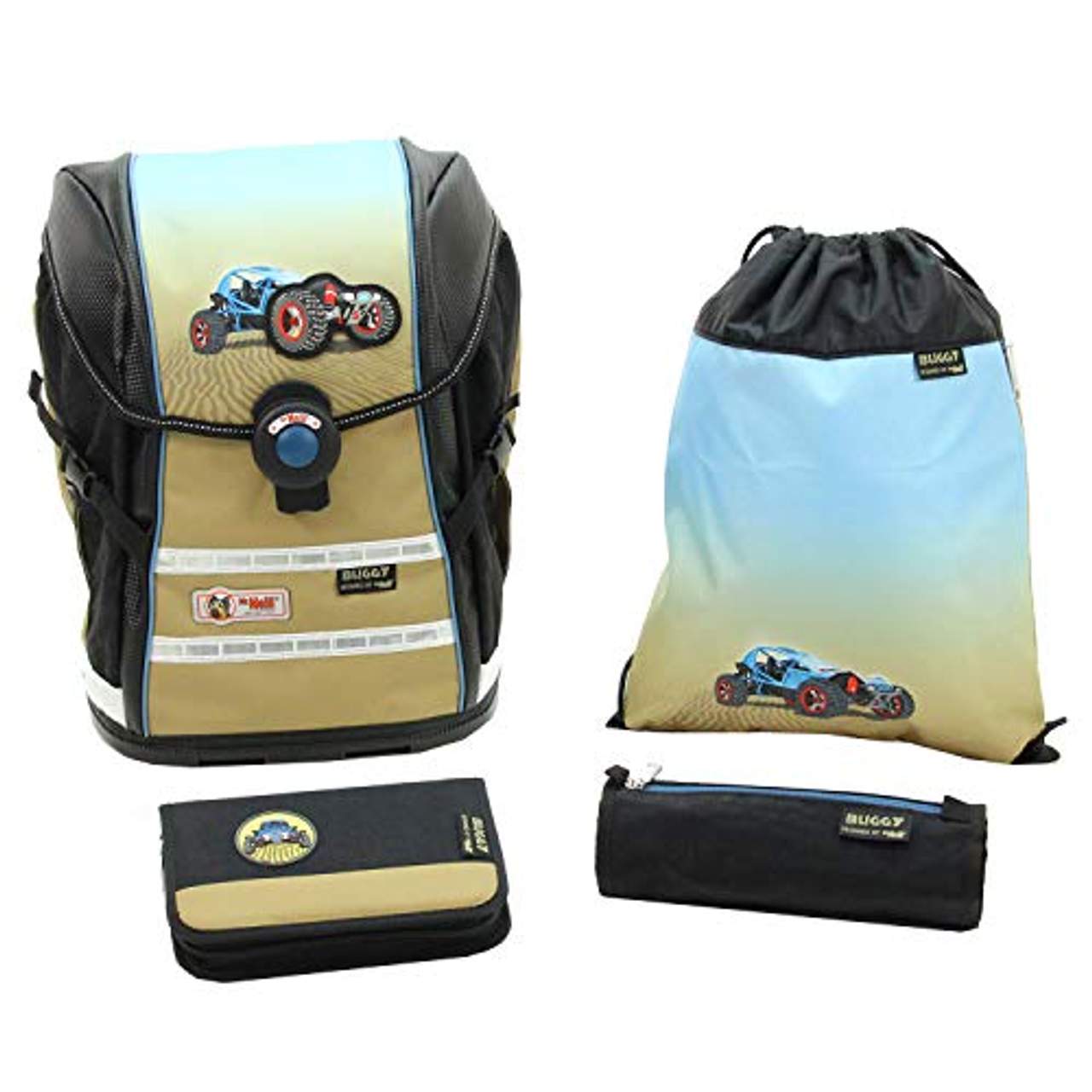 Dieses McNeill Ergo Light Move Schulranzen-Set besteht aus vier Teilen: einem Schulranzen, einer Sportschuhtasche/einem Turnbeutel, einem mit 23 Teilen gefüllten Etui und einer Federmappe/Bleistiftrolle. Der Schulranzen hat einen Schnappverschluss, der für einen sicheren Verschluss magnetisch angezogen wird und eine wasserdichte Bodenplatte für Stabilität. Außerdem verfügt er über verstellbare Becken- und Brustgurte, einen abnehmbaren Beckengurt, gepolsterte Schultergurte mit Schnellverschluss und offene Seitentaschen mit Ruck-Zuck-Verschluss. Aufgrund seiner Eigenschaften ist er am besten für Kinder mit einer altersgerechten Statur geeignet. Außerdem ist er aus hochwertigen Materialien mit coolem Buggy-Motiv gefertigt!