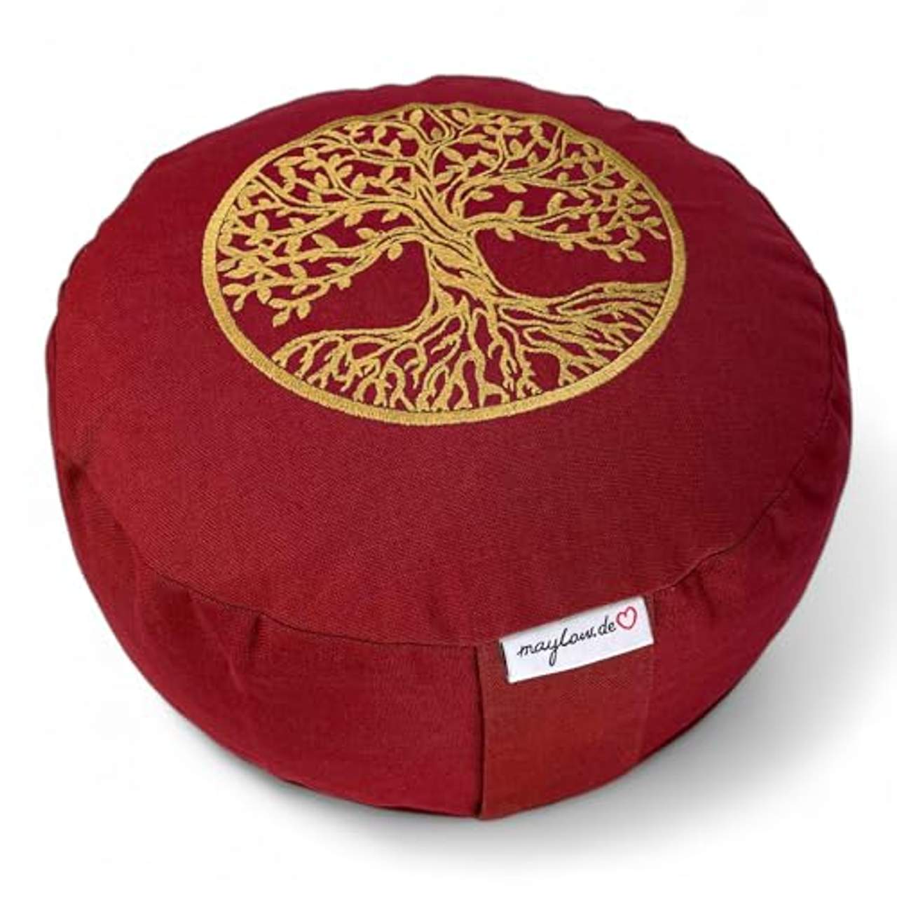 - maylow Yoga mit Herz Yogakissen Meditationskissen mit Stickerei Baum des Lebens