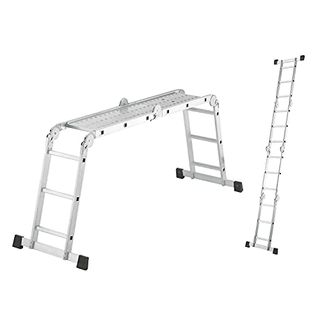 Diese Multifunktionsleiter ist vielseitig einsetzbar und variabel konfigurierbar. Sie kann als Gerüst, als Anlegeleiter oder als Doppelleiter verwendet werden - alles in einem. Mit ihren zahlreichen Montagemöglichkeiten wird sie den unterschiedlichen Höhenanforderungen für verschiedene Aufgaben gerecht. Außerdem lässt sich die Leiter bei Nichtgebrauch ganz einfach auf ein kompaktes Maß von 97 x 39 x 25,5 cm (B x H x T) zusammenklappen, so dass sie bequem und platzsparend verstaut werden kann.
