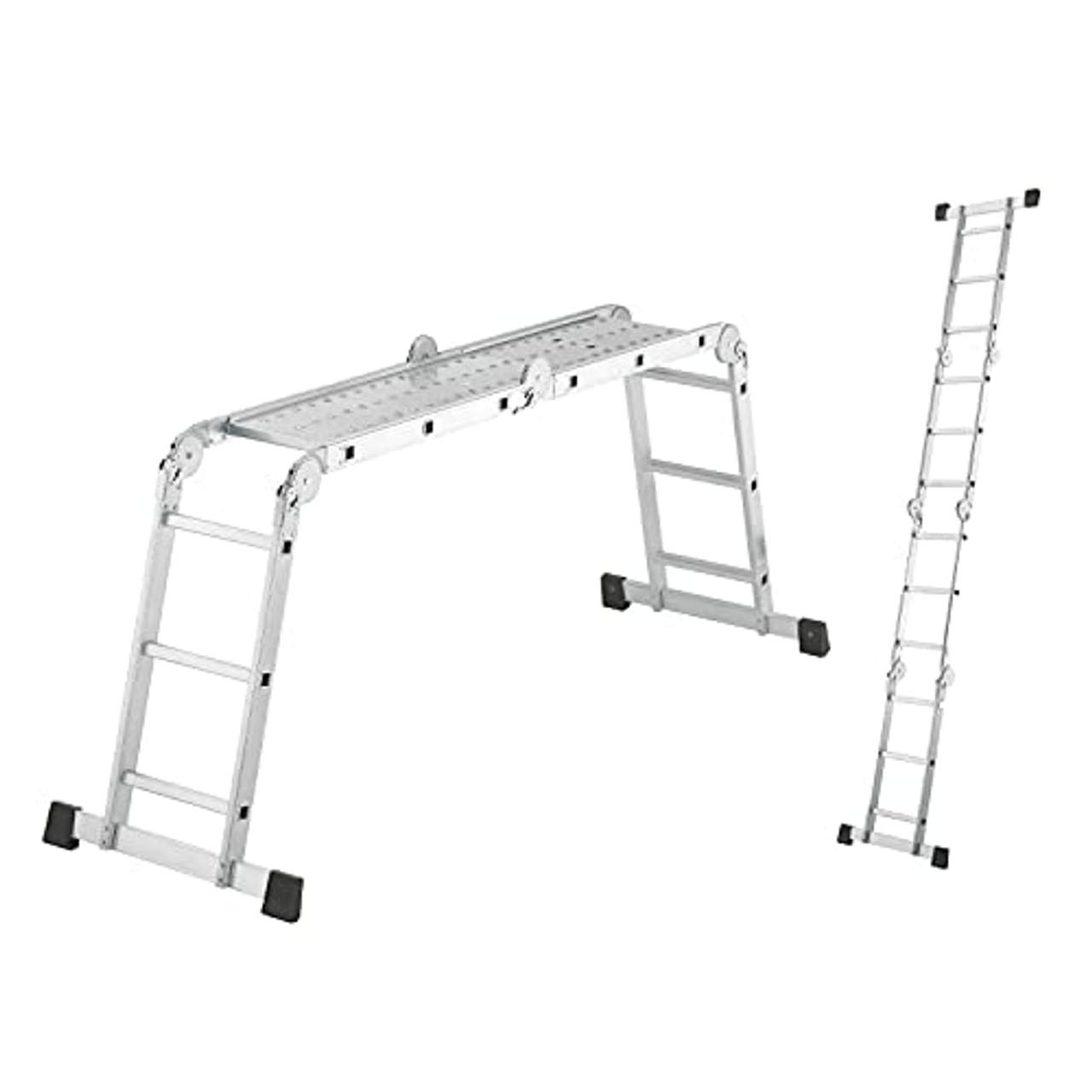 - Kompakte Aufbewahrung: Diese Mehrzweckleiter lässt sich für den Transport oder zum Verstauen zusammenklappen, so dass sie bei Nichtgebrauch leicht auf kleinem Raum untergebracht werden kann.