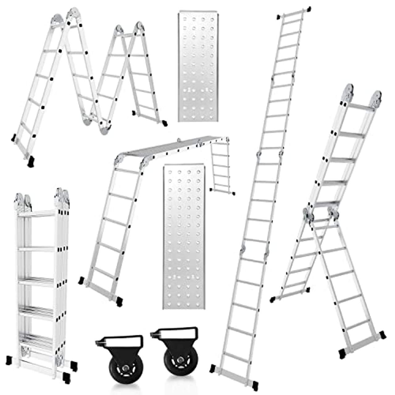 - Praktisch: Die Herrselsam Multipurpose Ladder 4x5 7in1 Multifunctional Ladder 582CM Aluminium Multipurpose Ladder Folding Ladder kann auf viele praktische Arten verwendet werden, z. B. zum Fensterputzen, für Bauarbeiten im Innen- und Außenbereich, für Gartenarbeiten und vieles mehr. Mit den mitgelieferten Rollen und der Plattform kannst du sie ganz einfach in die gewünschte Position bringen, während du fest auf der Leiter stehst.