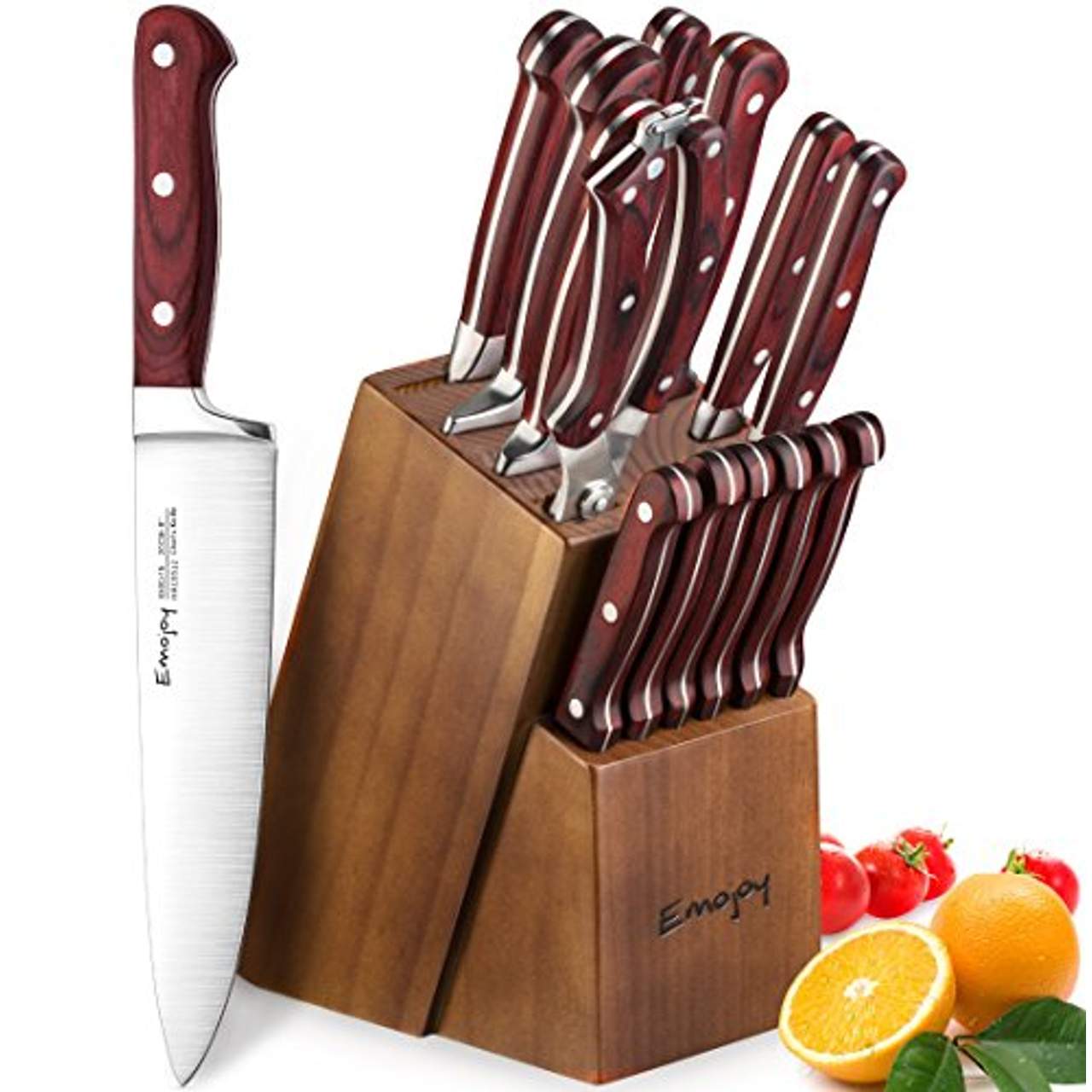 Preisvergleich: Günstigste Angebote für Emojoy Messerblock 15-teiliges Messerset Holzgriff