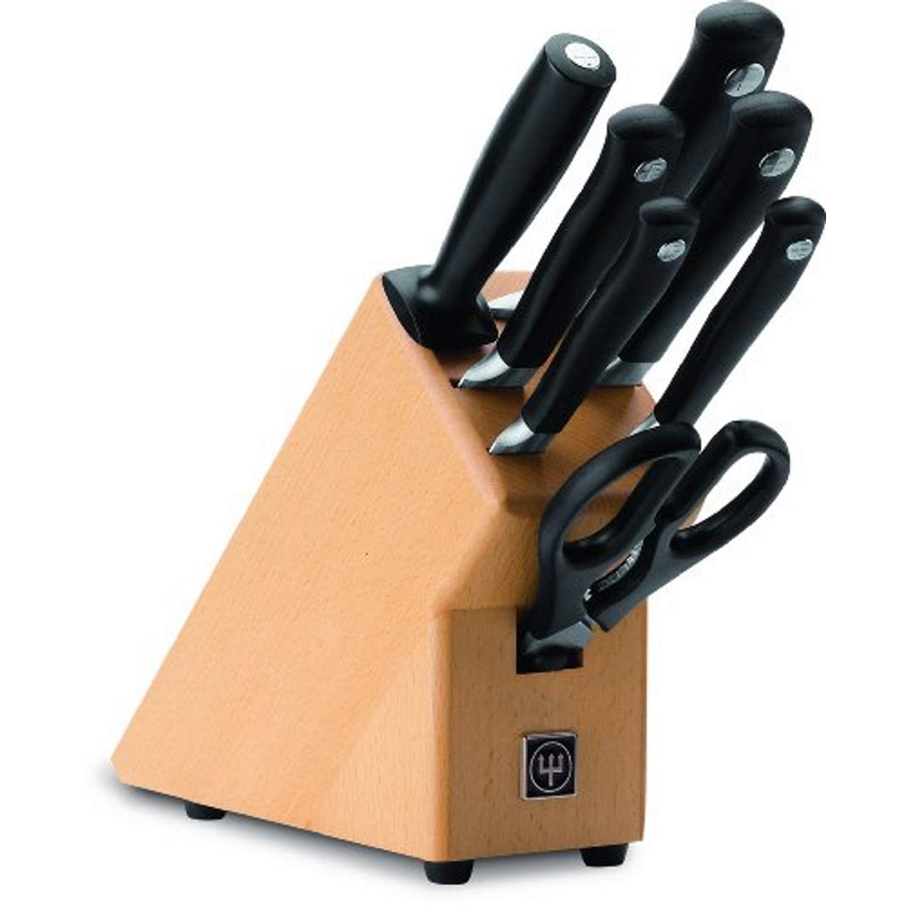 WÜSTHOF Messer Buche 0 inchesDer Wüsthof GRAND PRIX II Messerblock mit 7 Teilen 9851-2 ist ideal zum Aufbewahren Ihrer Messer. So verstauen Profis Ihre Arbeitsgeräte. Ein Blickfang in jeder Küche. Die Wüsthof GRAND PRIX II Messer sind aus rostfreiem Edelstahl, und die ergonomisch geformten Griffe sind aus hochwertigem Kunststoff gefertigt. Der Wüsthof Messerblock besteht aus hochwertiger Buche.
