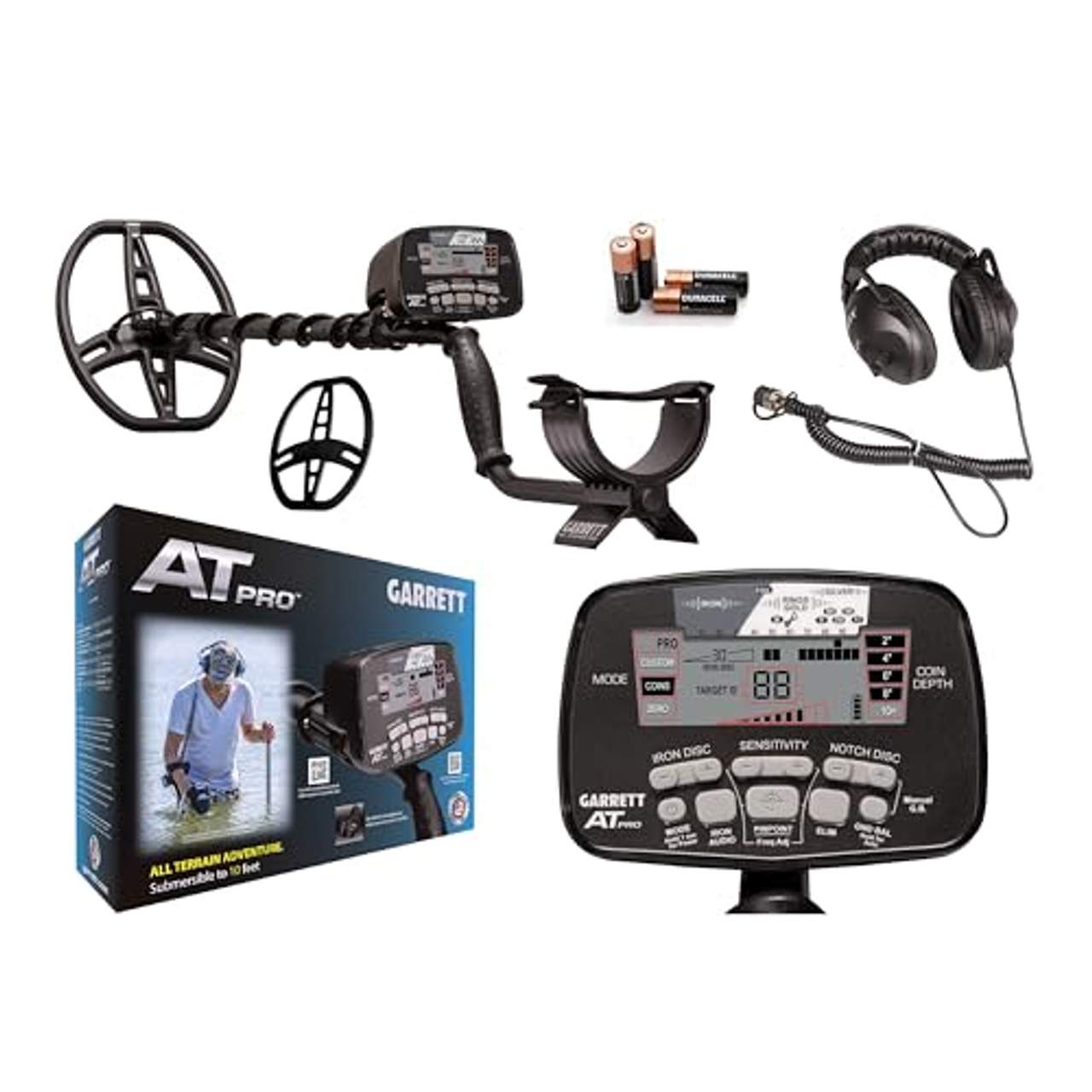 GARRETT AT PRONeueste Technologie und Qualität von GARRETT - AT PRO - steht nicht nur für All-Terrain - also für alle Suchbedingungen, sondern auch für innovativste Ausstattung. Inklusive der neuen grossen DD 21,5 x 28 cm / 8.5x11" SuchSpule - Tiefenleistung garantiert ! Zusätzlich zur Balkenanzeige der verschiedenen Metallarten können Sie über die digitale numerische Leitwertanzeige Metallarten einfacher und genauer erkennen und bestimmen. Von 1 / Eisen bis z.B. dickem Silber auf 99. Zusätzlich finden Sie auf dem grossen Display, eine Tiefenanzeige in cm sowie ständige Batteriekontrolle. Mit dem einfachen Batteriewechsel und dem sicheren O-Ring Verschluss ist der AT PRO ständig bis 3 Meter Wassertiefe bereit.