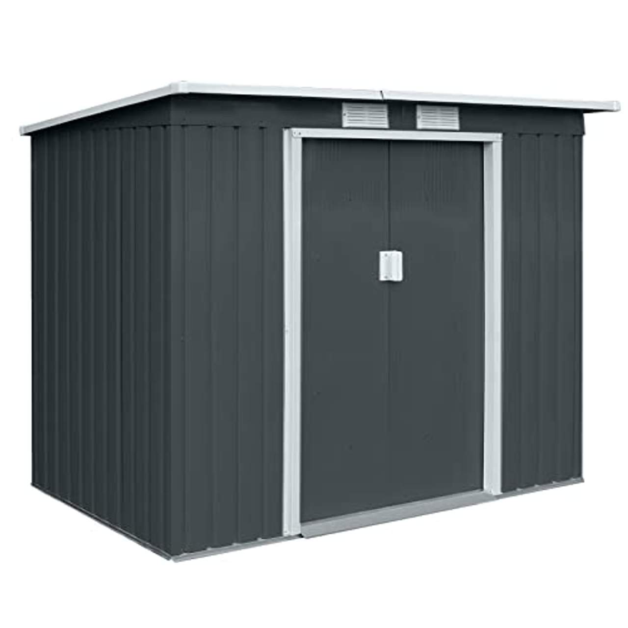 Hattoro P100 Gartenhaus MetallHATTORO GerätehausDas Gerätehaus von HATTORO ist ein sehr beliebtes Modell und bietet ausreichend Platz und Lagerfläche für all Ihre Gartengeräte. Im Metallhaus verstaut, sind Ihre Utensilien gut vor Witterung und Verschmutzung geschützt.Das Pultdach lässt Niederschlag problemlos ablaufen.Dank der weit öffnenden Doppel-Schiebetüren, ist das Haus leicht zugängig und auch größere Geräte lassen sich leicht ein- und ausräumen. Die Belüftungsgitter sorgen für eine gute Luftzirkulation und beugen Feuchtigkeit und Schimmel-Bildung vor.Der Schuppen ist aus lackiertem und verzinktem Stahlblech gefertigt und in einem zeitlosen Design gehalten.Der mitgelieferte Fundament-Rahmen aus Metall bietet Stabilität und einen sicheren Stand - Sie haben hier die Möglichkeit einen Boden einzuziehen (Bodenplatten nicht im Lieferumfang enthalten). Das Pultdach lässt Niederschläge problemlos ablaufen. Produktdetails: Farbe: Grau / AnthrazitGesamtmaße: ca. 213 × 130 × 173 cm (L x Bx xH)Innenmaße: ca. 203 × 117 × 170 cmSockelmaß: ca. 203 × 117 cmFirsthöhe: ca. 173 cmTraufhöhe: ca. 151 cmBreite der Tür: ca. 96 cm2x Schiebetür2x BelüftungsgitterPultdach Lieferumfang: 1x Gerätehaus inkl. Fundament-Rahmen - als Bausatz1x Aufbauanleitung