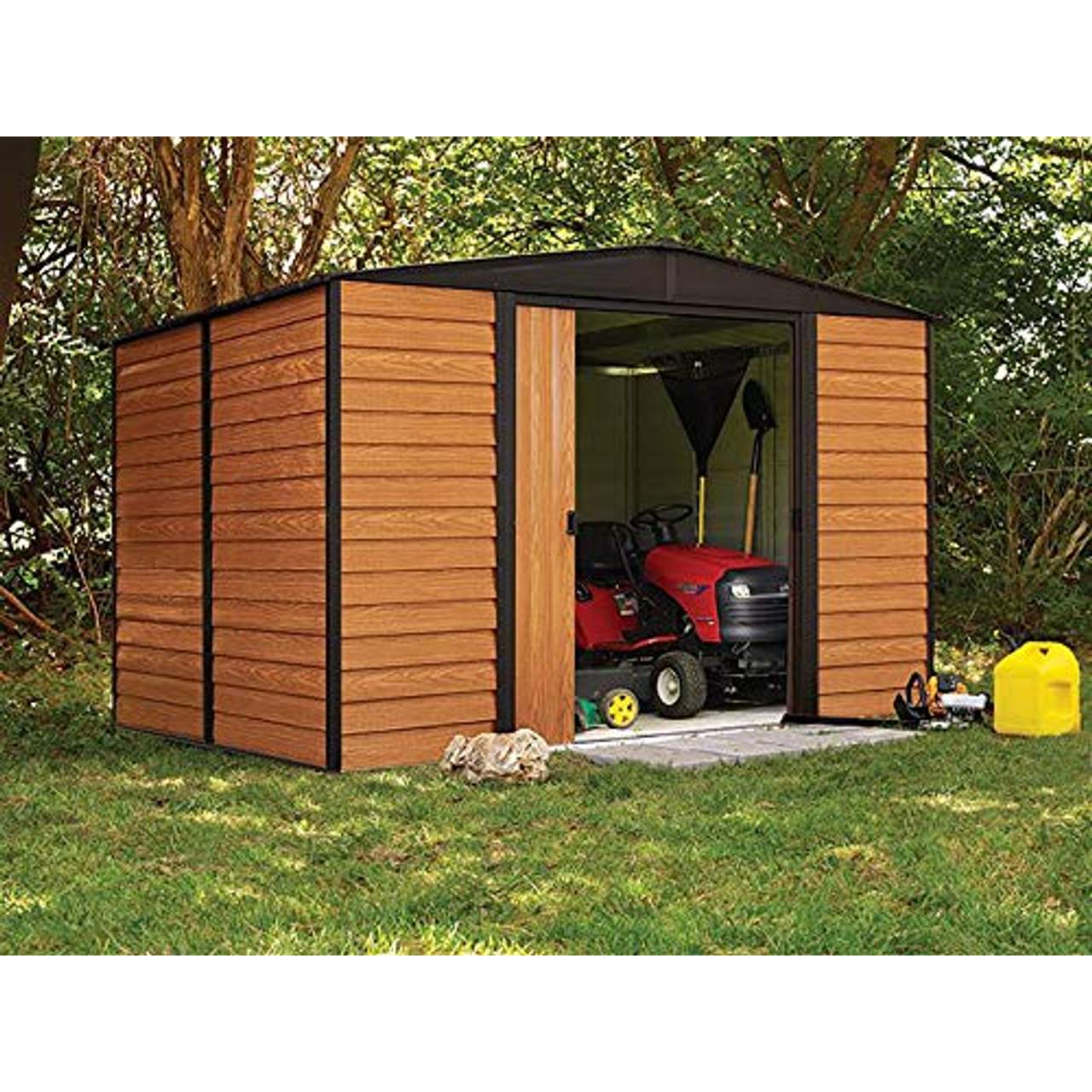 - Sicherheit: Dieses Produkt verfügt über eine doppelte Schiebetür mit Kunststoffgleitern, die einen schnellen Zugriff auf Ihr Gartenzubehör ermöglicht. Außerdem besteht die Möglichkeit, ein Vorhängeschloss anzubringen, damit Ihre Gegenstände sicher bleiben.