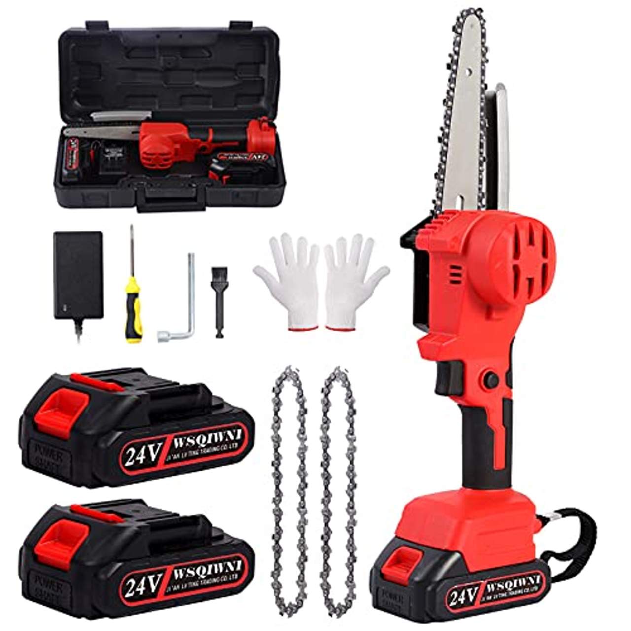Der Akku der Wsqiwni 6-Zoll-Mini-Kettensäge ist nur ein Aspekt ihres komfortablen Designs. Dank der zwei wiederaufladbaren 24-V-Lithium-Batterien kannst du die Säge bedenkenlos im Freien einsetzen, was sie tragbar und energieeffizient macht. Wenn du also eine Mini-Kettensäge suchst, die flexibel und bequem einsetzbar ist, ist dieses Produkt eine ausgezeichnete Wahl.