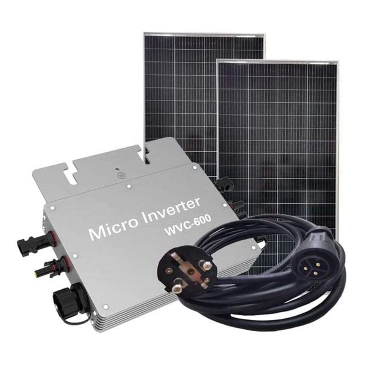 | Lieferumfang | 2 x Solarmodule (400 Watt pro Modul), 600 Watt Wechselrichter, 5 Meter Schutzkontakt-Verlängerungskabel für Ihre …mehr |