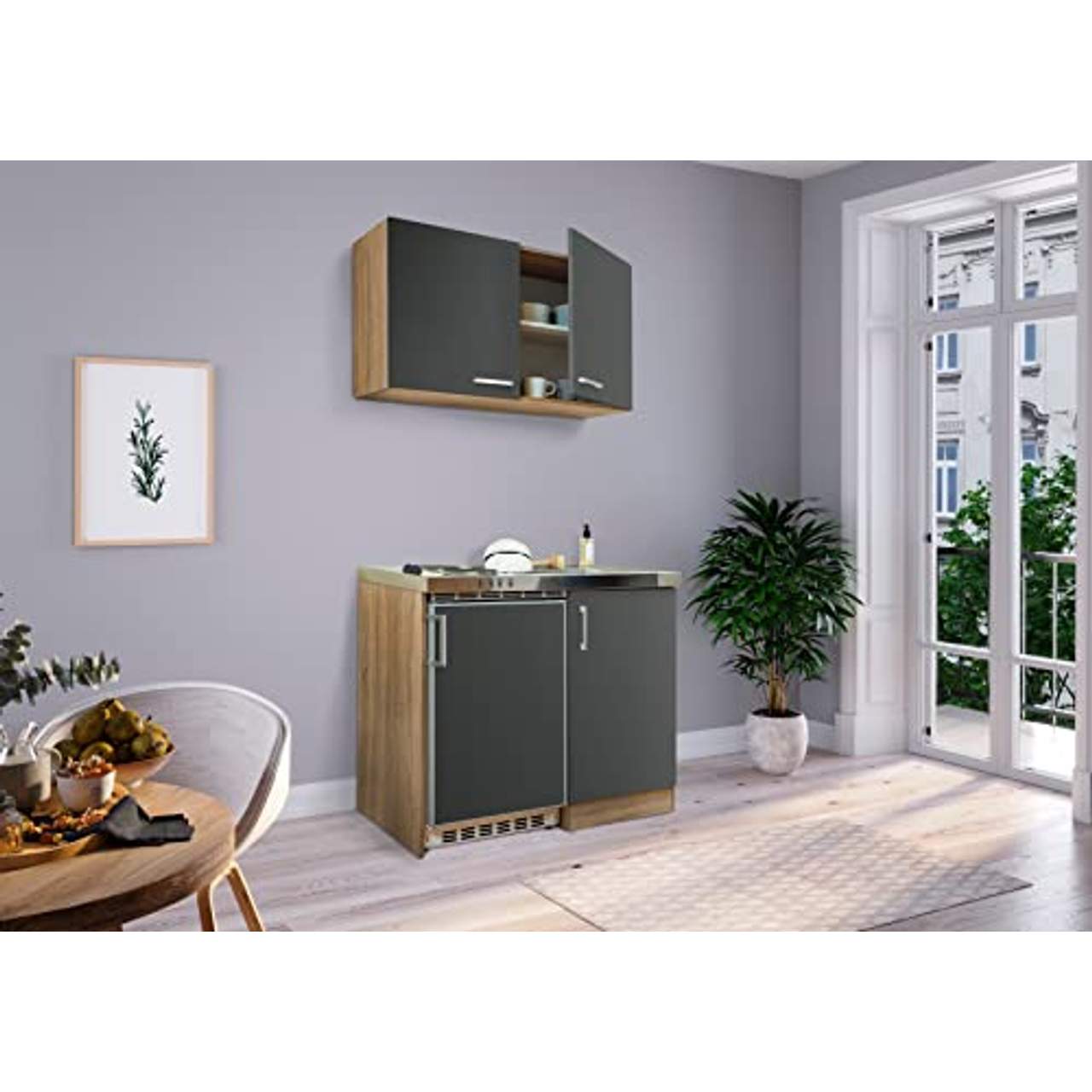 Küche Miniküche Singleküche Küchenzeile Pantry Eiche: Eine kompakte Lösung für kleine Räume
