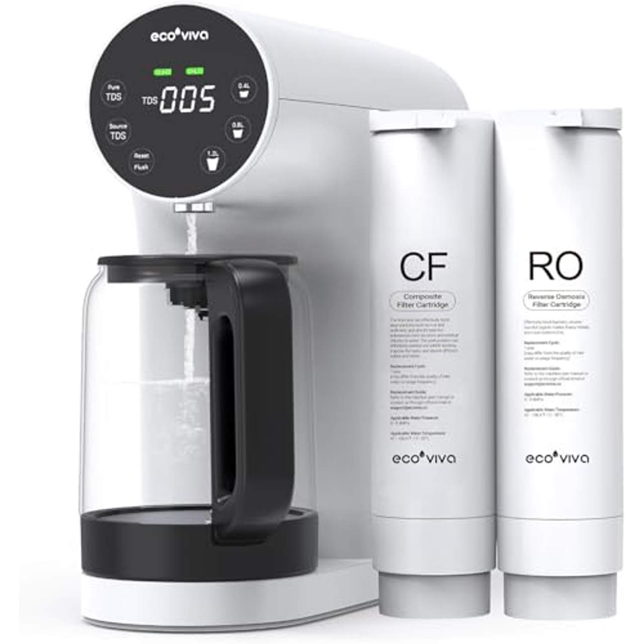 - Elegantes Design: Der Ecoviva WP-RO-200G-W ist ästhetisch und funktional zugleich und besticht durch sein elegantes Design, das jeden Raum aufwertet und dank seiner kompakten Größe (12*31*31cm) auch tragbar ist. Im Gegensatz zu sperrigen traditionellen Systemen, die die Optik in Küchen oder Wohnbereichen stören, fügt sich dieses elegante Gerät nahtlos in verschiedene Umgebungen ein - von der heimischen Küche bis zum Wohnmobil - ohne Kompromisse bei Stil oder Funktionalität einzugehen. Außerdem verfügt das Produkt über einen Glaskrug, der 150 % dicker ist als durchschnittliche Modelle, und einen eingebauten Edelstahlsockel; diese Kombination erhöht nicht nur die optische Attraktivität, sondern beseitigt auch Bedenken hinsichtlich der Sekundärverschmutzung durch Plastikbehälter.