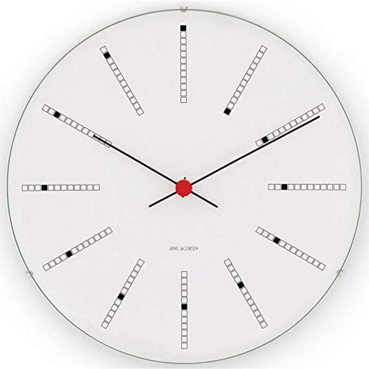 - Zeitloses Design: Die Arne Jacobsen Bankers Wanduhr ist ein zeitloser Designklassiker, entworfen von dem berühmten dänischen Architekten und Designer Arne Jacobsen. Sie hat einen modernen Look mit hohem Wiedererkennungswert, dank der geteilten Balken, die ihr Zifferblatt zieren.