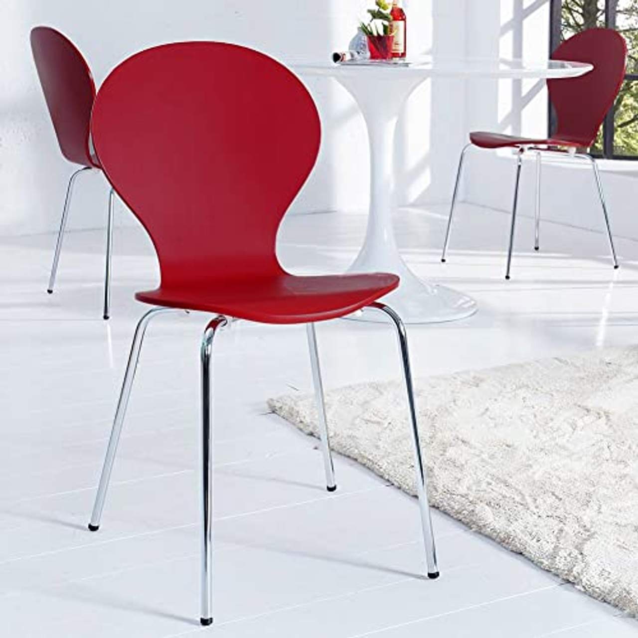 Der Retro Lounge Design Klassiker Stuhl JACOBSEN Rot ist ein stilvoller Loungesessel der Marke „cagü“, der für sein klassisches Retro-Design und seine leuchtend rote Sitzfläche bekannt ist. Der Stuhl hat eine Sitzfläche aus laminiertem Buchenholz, die für Langlebigkeit und Komfort sorgt, während die Beine aus verchromtem Stahlrohr gefertigt sind, was ihm einen modernen Touch verleiht. Mit Abmessungen von ca. 44 cm in der Breite, 47 cm in der Tiefe und 86 cm in der Höhe sowie einer Sitzhöhe von 46 cm eignet er sich für verschiedene Umgebungen. Der Stuhl kann mit bis zu 130 kg belastet werden und ist stapelbar, so dass bis zu sechs Stühle bequem verstaut werden können, wenn sie nicht gebraucht werden. Außerdem muss er bei der Lieferung zusammengebaut werden, was den Aufbau für die Nutzer erleichtert. Cagü bietet diesen exklusiven Designklassiker in mehr als 19 Farben an, um den unterschiedlichsten ästhetischen Vorlieben gerecht zu werden.