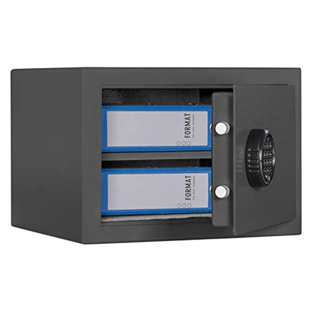 Format Möbeltresor TresorMöbeltresor Format M 410 mit elekt. Schloss S&G Sicherheitsstufe B nach VDMA 24992 Doppelwandig Mit Feuerfalz Zum sicheren Aufbewahren von z.B. Aktenordner, Schmuck, Bargeld u.s.w. Mit elektronischem Zahlenschloss Herausnehmbarer Einlegeboden Bohrungen: 2 Bohrungen im Boden und 2 Bohrungen in der Rückwand durchgebohrt Korpus doppelwandig Tür doppelwandig, mit stabilen Rundbolzen Technische Daten Außenmaß: (H x B x T) 300 x 420 x 380 mm (zzg. Schloss) Innenmaß: (H x B x T) 226 x 350 x 296 mm Gewicht: 31,5 kg