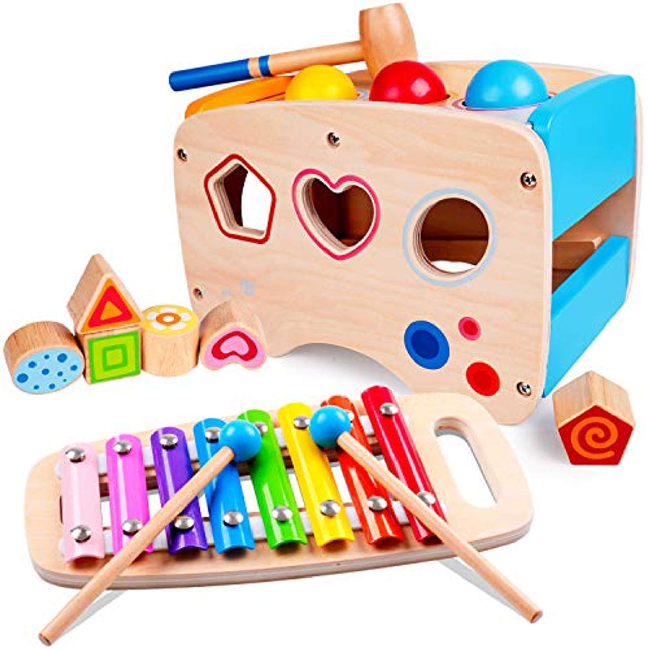 - Hochwertige Handwerkskunst: Das Rolimate Xylophon und Hammerspiel Spielzeug ab 1 Jahr wurde sorgfältig mit leuchtenden Farben hergestellt, die die Aufmerksamkeit deines Kindes auf sich ziehen werden.