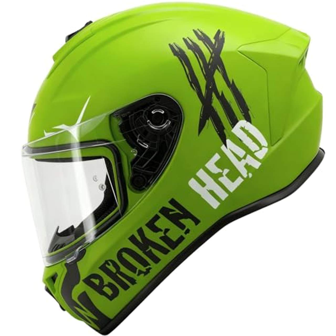 Das Design des Broken Head Adrenalin Therapy VX2 ist auffällig und stylisch. Er kommt in einem coolen, matten Militärgrün mit einem Totenkopf auf der Rückseite daher, der andere Fahrer beeindrucken und dich auf der Straße auffallen lassen wird.