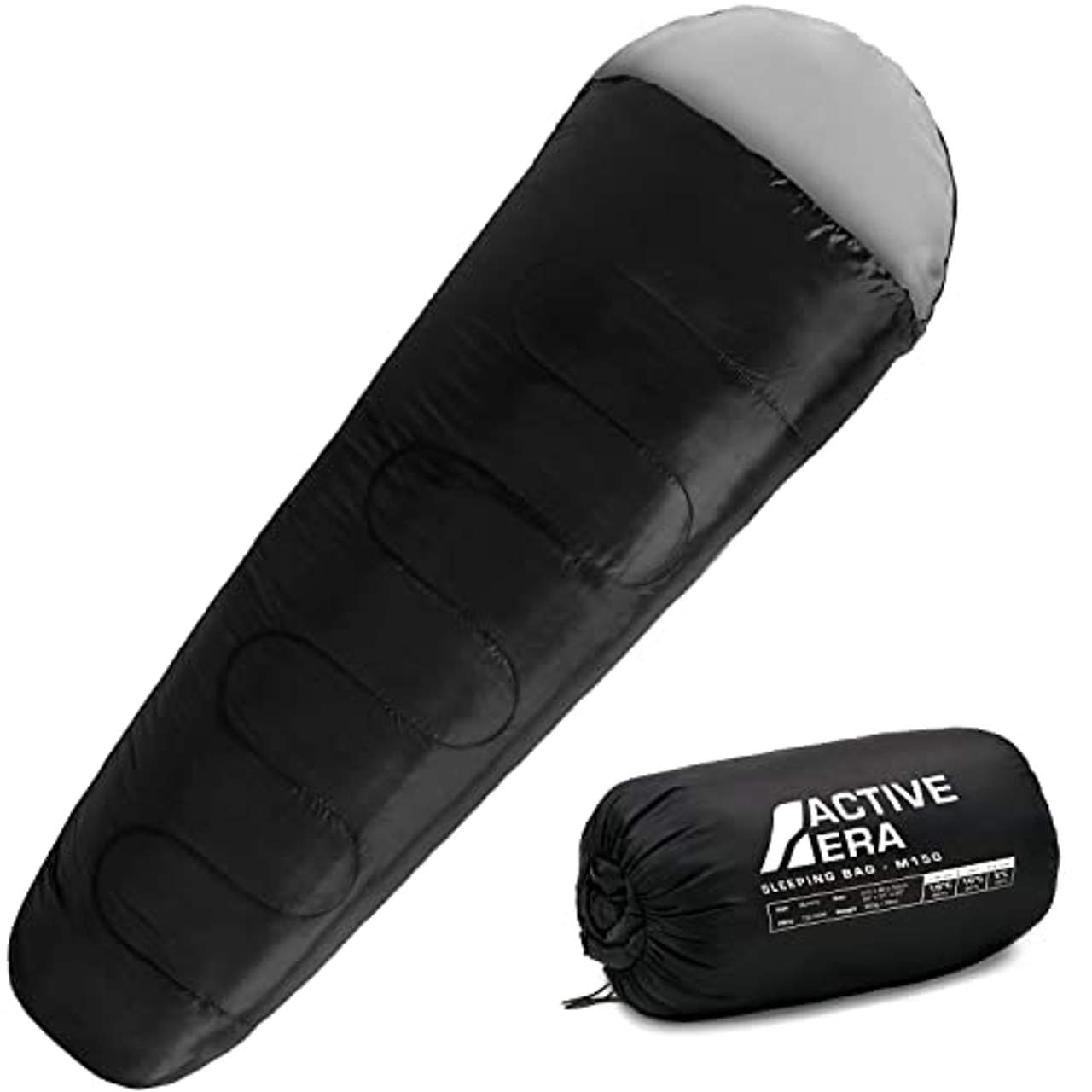 Active Era 150 Premium MumienschlafsackDer Active Era Premium MumienschlafsackMit strapazierfähigem 170T Polyester und praktischer TragetascheDieser ultraleichte Schlafsack ist für jegliche Anlässe universell einsetzbar - ideal zum Campen, Übernachtungsparty oder für Gäste. Der Mumienschlafsack besteht aus langlebigen 170T Polyester (Außenmaterial) und einem 150 g/m² Innenfutter. Empfohlene Temperaturbereiche: Komfort 18°C bis 15°C | Extrem bis 5°C.Der Schlafsack eignet sich somit ideal für Indoor sowie Outdoor Aktivitäten, wie zum Beispiel: Übernachtungspartys, Camping Ausflüge, Angel Trips oder Klassenfahrten.· Leichtes Gewicht: 800 g