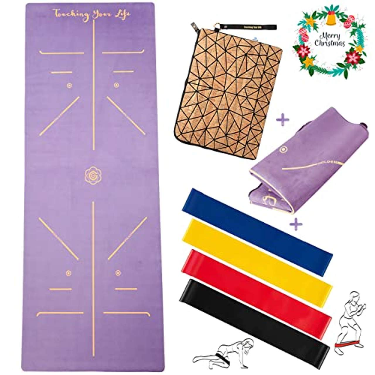 Diese Yogamatte von GOLDEN ist eine gute Wahl für nachhaltige und sichere Übungen. Sie hat eine Mikrofaseroberfläche, die Schweiß schnell absorbiert und guten Halt bietet, wenn sie mit Wasser besprüht wird. Das reisefreundliche Design ist 1,15 kg schwer und 1,5 mm dick, was sie perfekt für den Transport macht. Außerdem kann die Kombi-Matte allein oder als Abdeckung für öffentliche Matten verwendet werden und wird mit einem Korkbeutel als Zubehör geliefert. Die Widerstandsbänder bestehen zu 100 % aus hochwertigem Naturlatex, das ungiftig und hautfreundlich ist, und bieten vier verschiedene Trainingsintensitäten.
