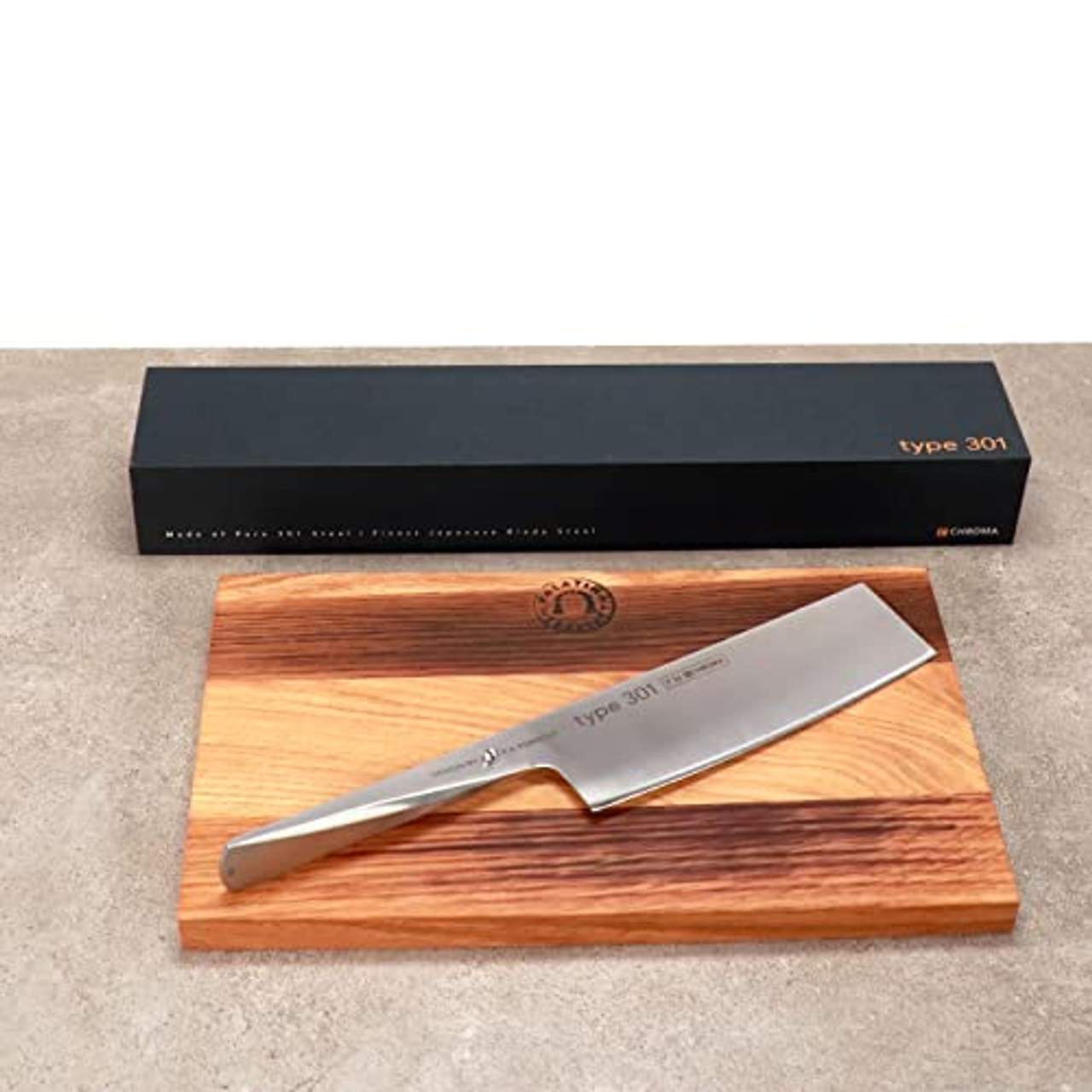 Das Chroma Messer Typ 301 hebt sich mit seiner präzisionsgefertigten Klinge und seinem eleganten Design vom Markt der Nakirimesser ab. Wir schätzen vor allem die Klinge aus Pure-301-Stahl und den japanischen V-Schliff, die für eine außergewöhnliche Schärfe und müheloses Schneiden von dünnen Scheiben sorgen. Der ergonomische Griff mit dem sensorischen Stopper sorgt für mehr Komfort und Kontrolle und erhöht das Benutzererlebnis noch weiter. Das dazugehörige handgefertigte Schneidebrett ergänzt dieses unverwechselbare Messer und unterstreicht seine Qualität. Für jeden, der einen persönlichen Nakiri-Messer-Test durchführt, ist das Chroma Messer Typ 301 aufgrund seiner Mischung aus Ästhetik, Funktionalität und Langlebigkeit eine ausgezeichnete Wahl.