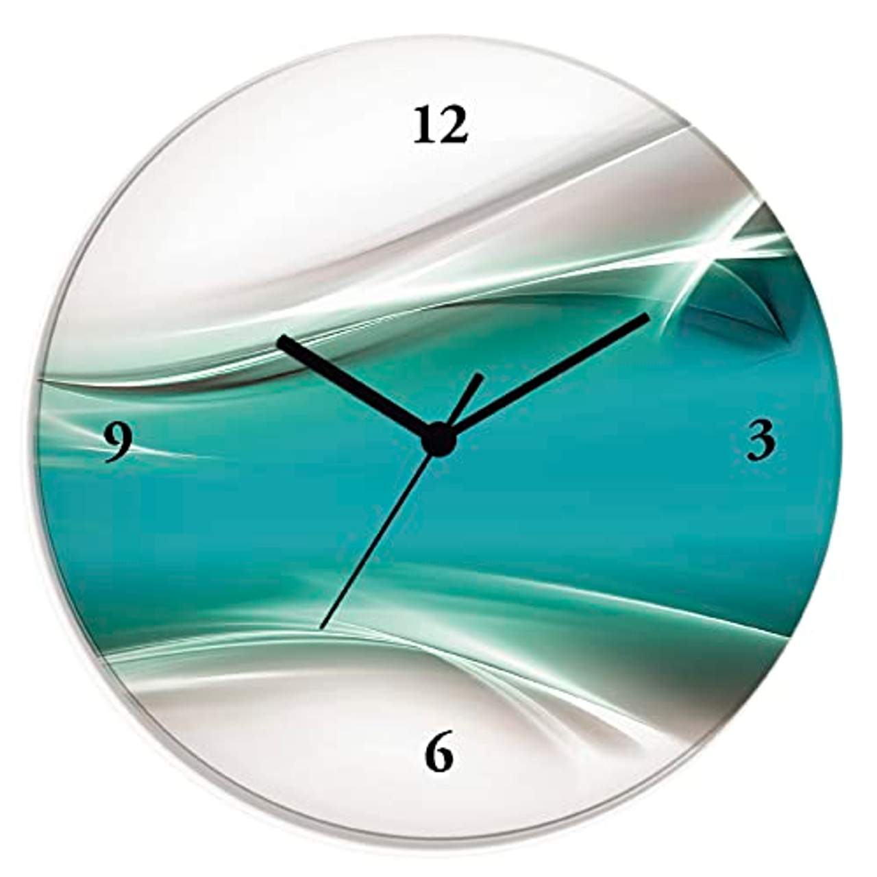 Artland Wanduhr ohne Tickgeräusche Glasuhr rundMotiv: Kreatives Element Petrol für Ihr Art-Design I Größe: 30 cm Welle Linie Kreuz weiß Bogen Schwung SchattenARTland Qualitätsuhren