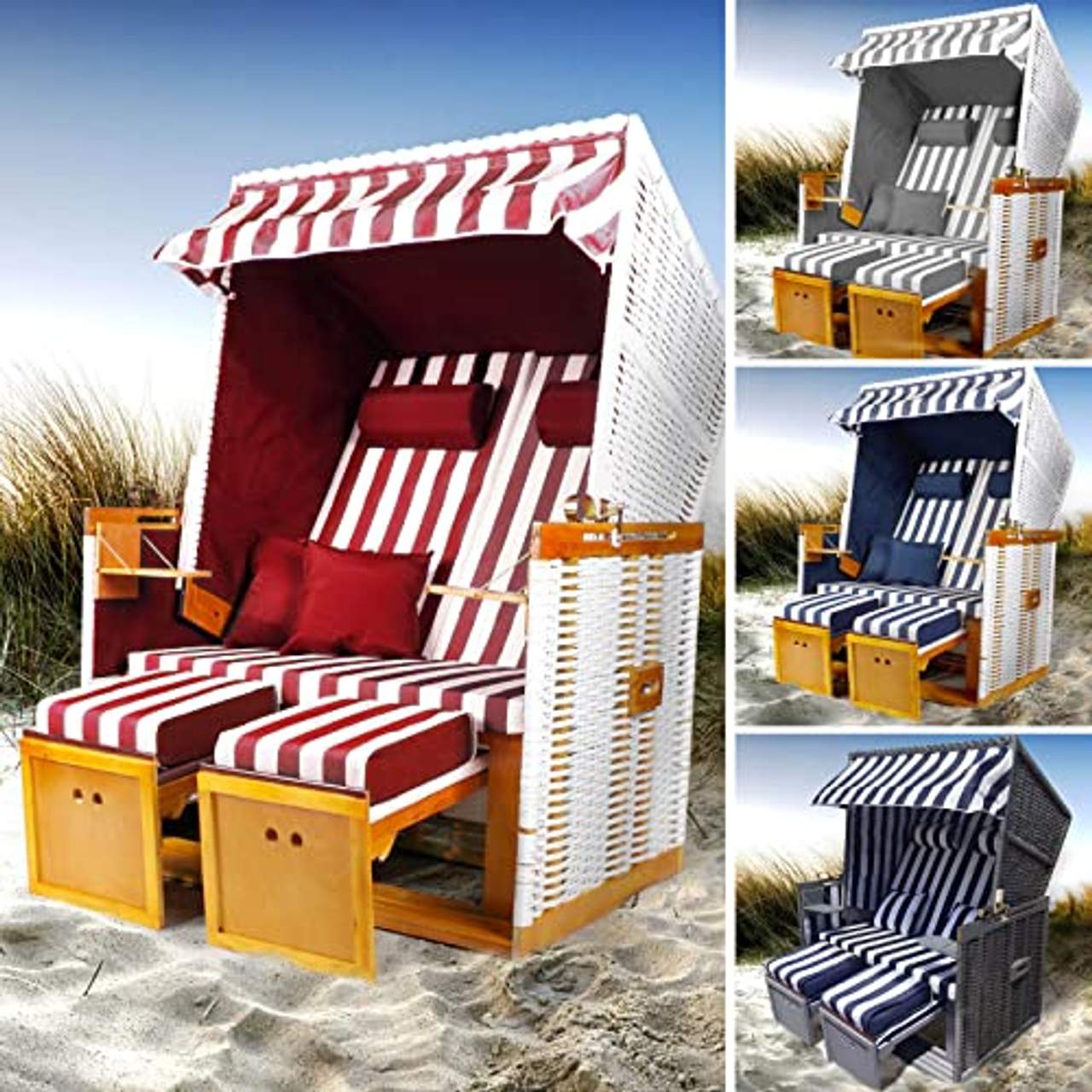 - BRAST Strandkorb Nordsee XXL Volllieger Weiß Rot gestreift inclca. 320 €kostenlose Lieferung