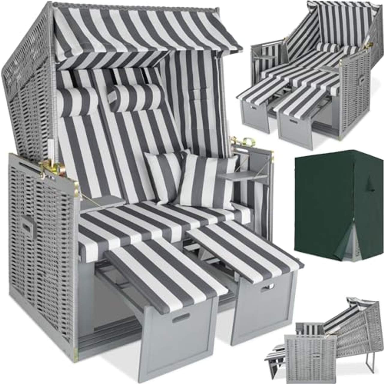 - Bounv Strandkorb Nordsee mit Dach 2-Sitzer 3-Fach Verstellbare Rückenlehne StrandkörbeSpartipp
