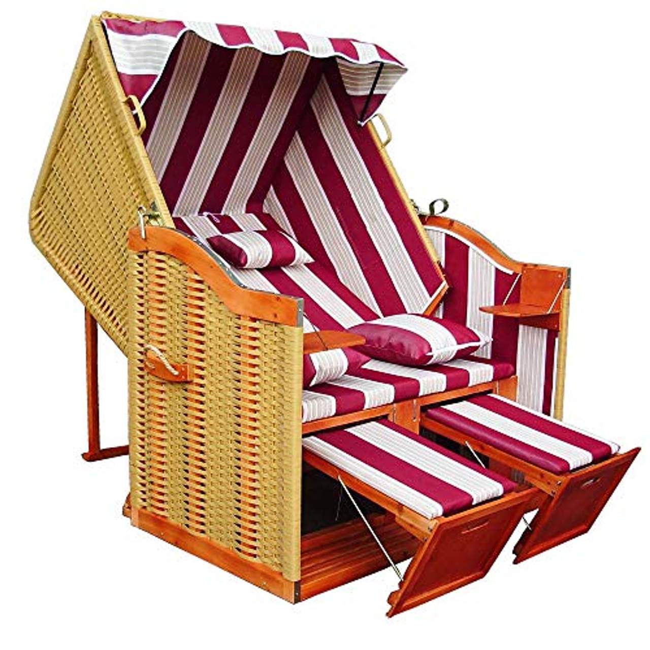 - Stilvolles Design: Dieser Strandkorb hat ein stilvolles Design mit einem roten Streifenmuster auf naturfarbenem Polyrattan und einer blauen Abdeckhaube, die Ihrem Außenbereich ein attraktives Aussehen verleihen wird.