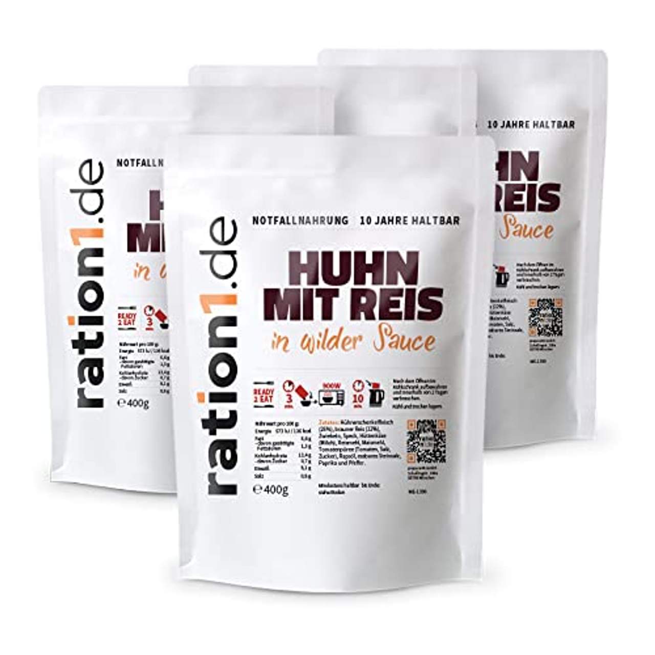 Verbraucherinnen und Verbraucher nehmen Notnahrung oft als geschmacklos oder unappetitlich wahr, weil sie Kompromisse eingehen, um die Haltbarkeit zu verlängern. „ration1.de Huhn mit Reis“ widerlegt diesen Mythos mit einer köstlichen Mischung aus Huhn und Reis, die in einer schmackhaften Wildsauce getränkt ist. Diese leckere Mischung wurde entwickelt, um den Verbrauchern auch unter widrigen Umständen ein schmackhaftes Esserlebnis zu bieten. Der gelungene Spagat zwischen Geschmack und Haltbarkeit hebt dieses Produkt aus dem überfüllten Markt der Notfallnahrung hervor.