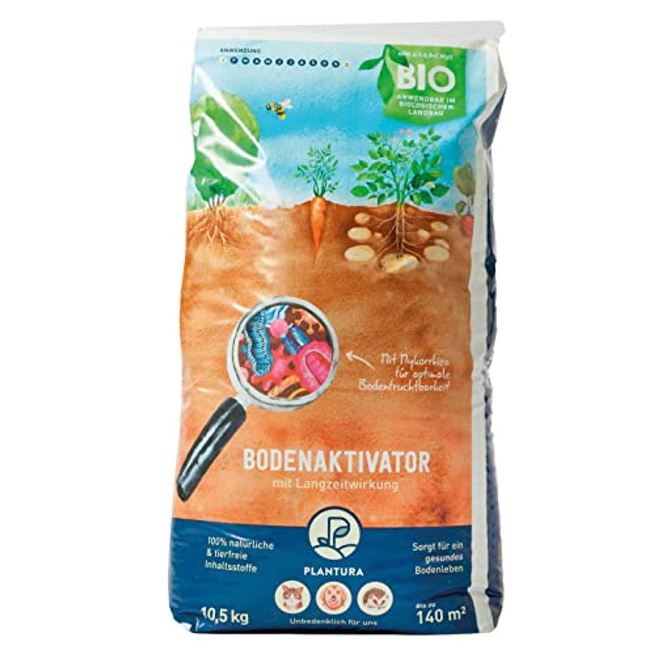 Um die Bodenfruchtbarkeit zu fördern, enthält der Plantura Bio Bodenaktivator mit 3 Monate Langzeit-Wirkung Mykhorrizapilze. Diese Pilze gehen mit den Pflanzenwurzeln eine nützliche Symbiose ein, die die Nährstoffaufnahmefähigkeit der Pflanzen erhöht, was zu besseren Wachstumsraten und robusteren Pflanzen führt.