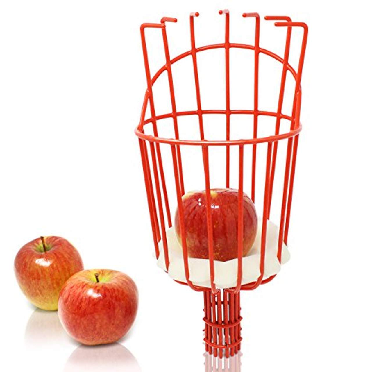 gut sortierten Baumarkt.Der Obstpflückkorb ist aus stabilem Stahl gefertigt und verfügt über eine rote PVC-Beschichtung, die ihn vor Rost schützt.Mithilfe der Zacken lassen sich Äpfel, Birnen und andere Früchte greifen, die anschließend durch ein leichtes Schütteln gelöst werden können.