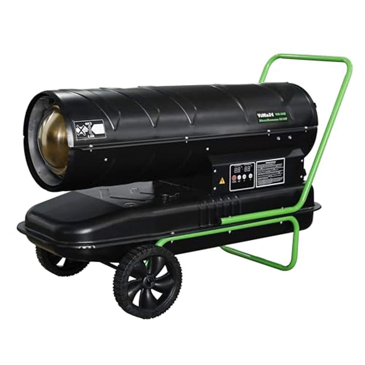 DeTec. Ölheizgebläse VM-50DUnser ViMa24 Dieselheizgebläse VM-50D ist die perfekte Wahl für alle, die eine leistungsstarke und zuverlässige Diesel-Heizung benötigen. Mit einer beeindruckenden Heizleistung von 50 kW bietet diese Heizkanone eine effiziente Lösung für Wärmebedarf in anspruchsvollen Umgebungen. Ob als Baustellenheizung, Landwirtschaftsheizung oder Lagerhallenheizung – die Dieselkanone überzeugt durch Vielseitigkeit und Robustheit. Dank des pulverbeschichteten Metallgehäuses ist das Heizgebläse 50 kW ideal für den Einsatz im Außenbereich geeignet und hält auch unter härtesten Bedingungen stand. Ein integriertes Thermostat sorgt für eine präzise Regulierung der Temperatur, während Sicherheitsfunktionen wie Überhitzungsschutz und Spritzwasserschutz einen sicheren Betrieb garantieren.Mit einem 56-Liter-Tank und einem geringen Dieselverbrauch ermöglicht diese Diesel-Heizung lange Betriebszeiten ohne häufiges Nachfüllen. Das Edelstahl-Heizelement und die robuste Brennkammer sorgen für Effizienz und Langlebigkeit, wodurch das Dieselheizgebläse auch im gewerblichen Dauereinsatz zuverlässig arbeitet. Ob für Baustellen, landwirtschaftliche Anwendungen oder große Lagerhallen – das DeTec. Dieselheizgebläse VM-50D bietet die ideale Kombination aus Leistung, Sicherheit und Benutzerfreundlichkeit. Leistungsstarkes Dieselheizgebläse mit 50 kW Heizleistung – ideal für den Einsatz in großen Räumen und Außenbereichen. Robuste Heizkanone mit pulverbeschichtetem Metallgehäuse – langlebig und witterungsbeständig. Perfekt als Baustellenheizung geeignet, um Arbeitsbereiche auch bei niedrigen Temperaturen zuverlässig zu erwärmen. Effiziente Landwirtschaftsheizung für Ställe, Werkstätten oder Lagerflächen auf landwirtschaftlichen Betrieben. Vielseitige Lagerhallenheizung für die schnelle und effektive Beheizung von großen Produktions- und Lagerflächen.Die Funktionen im Überblick: Heizleistung einstellbar bis 50.000 Watt Thermostat zur Regulierung der gewünschten Temperatur Heizelement aus Edelstahl Auch für den gewerblichen Dauereinsatz konzipiert Robustes Gehäuse mit Pulverbeschichtung Überhitzungsschutz, Schutz gegen Spritzwasser Fabrikneu und originalverpackt Daten und Fakten:Spitzenleistung: 50 kW (50000 Watt) Gebläseleistung: 1100 m³/h Spannungsversorgung: 230V, 50Hz Nennstrom: 1,5 A Stromaufnahme: 300 W Absicherung: 16 A Wiederanlaufschutz bei Stromausfall Heizelement: Edelstahl Brennkammer: Edelstahl Gehäuse: Metall, pulverbeschichtet Thermostat: integriert Kaltluftventilator: integriert Kraftstoff: Diesel Tankvolumen: 56 Liter Treibstoffverbrauch: ca. 2,9 L / Stunde Maße (LxBxH): 1055x500x685mm Gewicht: 23,5 Kg