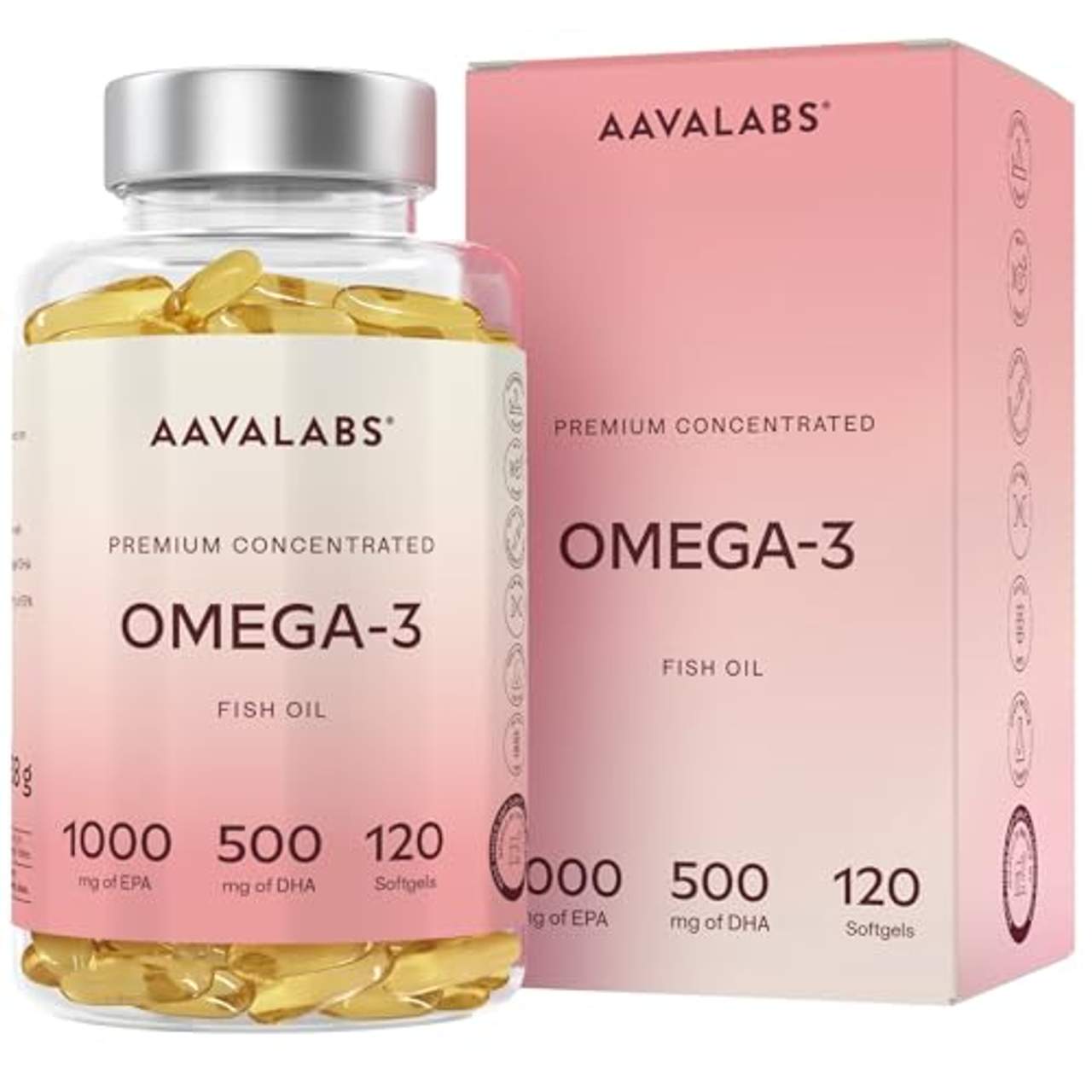 Das Premium-Omega-3-Fischöl von Aava Labs wurde für einen gesunden Lebensstil entwickelt und enthält 1000 mg EPA und 500 mg DHA in jeder Tagesdosis. Es verwendet eine patentierte Reinigungsmethode, um die Reinheit zu gewährleisten und PCBs, Toxine und Quecksilber zu entfernen. Es wird von einem finnischen Familienunternehmen hergestellt und enthält Sardinen und Makrelen aus dem Pazifik bei Chile. Jede Flasche enthält 120 Kapseln, was einem Vorrat von 2 Monaten entspricht, und wird mit einem ehrlichen Qualitätsversprechen geliefert: 365 Tage Geld-zurück-Garantie auch nach Ablauf des Produkts.