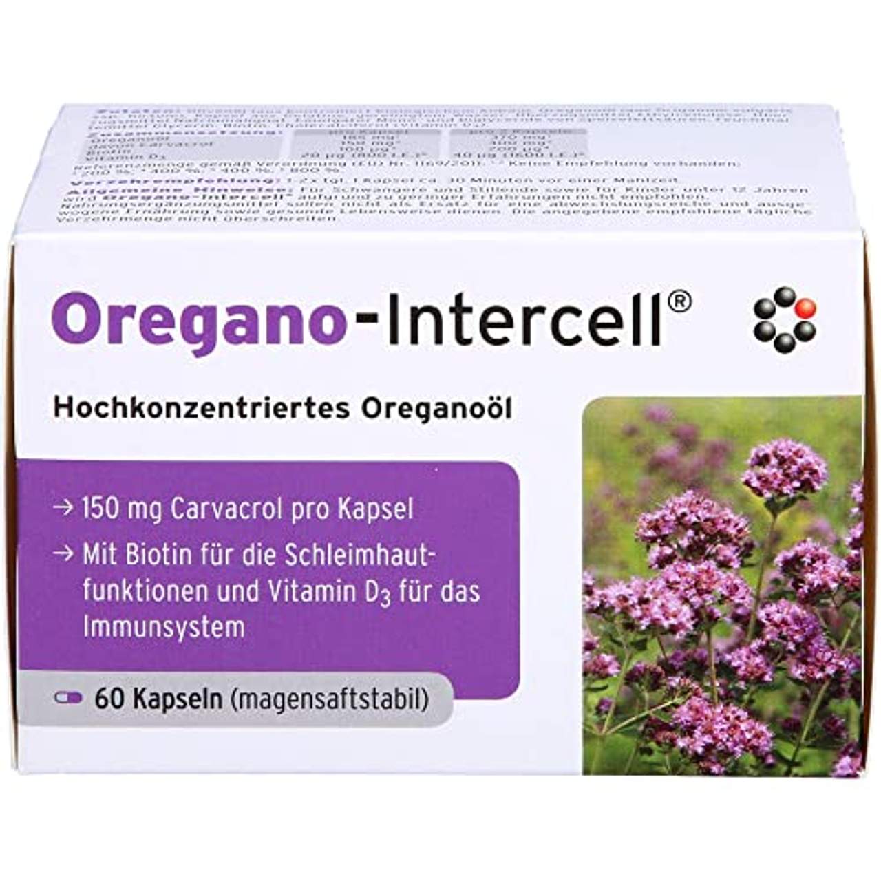 INTERCELL-Pharma GmbH OREGANO-INTERCELL magensaftresistente Weichkapseln sind eine Art Oreganoöl der deutschen Marke INTERCELL-Pharma GmbH. Es wird in magensaftresistenten Weichkapseln geliefert und enthält hochwertige Vitalstoffe. Es ist zur oralen Einnahme als Nahrungsergänzungsmittel bestimmt und in der Apotheke erhältlich.