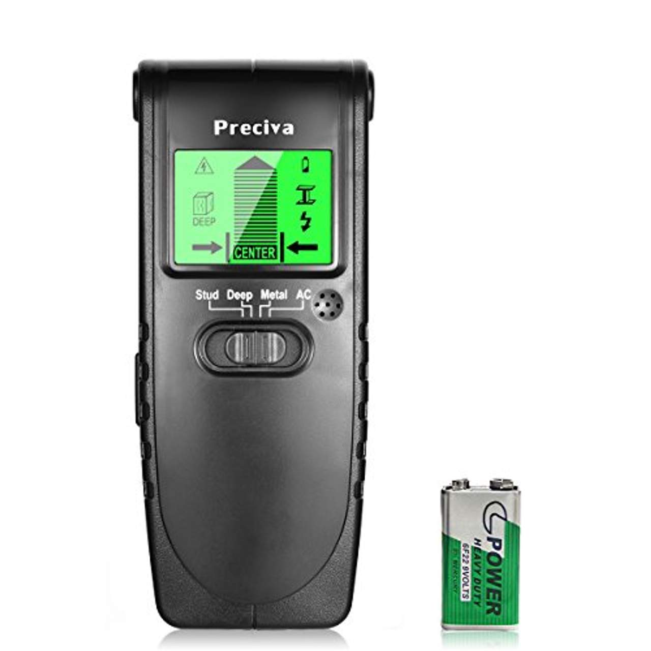 Preciva 3 in 1 OrtungsgerätPreciva 3 in 1 Ortungsgerät Wand Scanner Detektor für Metall, Rohre,Stromleitung, AC Spannungsführende Leitungen, Holz, Deep, Sound WarnungPreciva Ortungsgerät kann zuverlässig eingesetzt werden, es verfügt über eine ausreichende Messtiefe, es ist einfach zu bedienen und es ortet viele verschiedene Materialien zuverlässig und genau in der Wand.Für den Hausgebrauch, zwecks Bohren von Löchern oder beim Renovieren somit völlig ausreichend.Der Detektor lässt sich auf Holz, Metall und spannungsführende Adern einstellen.