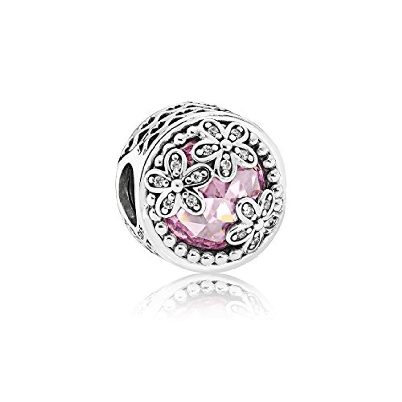 Pandora Damen -Bead Charms 925_Sterling_Silber zirkoniaDas detailverliebte Charm Daisy 792055PC der Marke Pandora besteht aus 925er Silber und ist mit einem funkelnden Zirkonia in Rosa besetzt. Die Blumen-Details machen dieses Charm zu einem verspielten Blickfang.