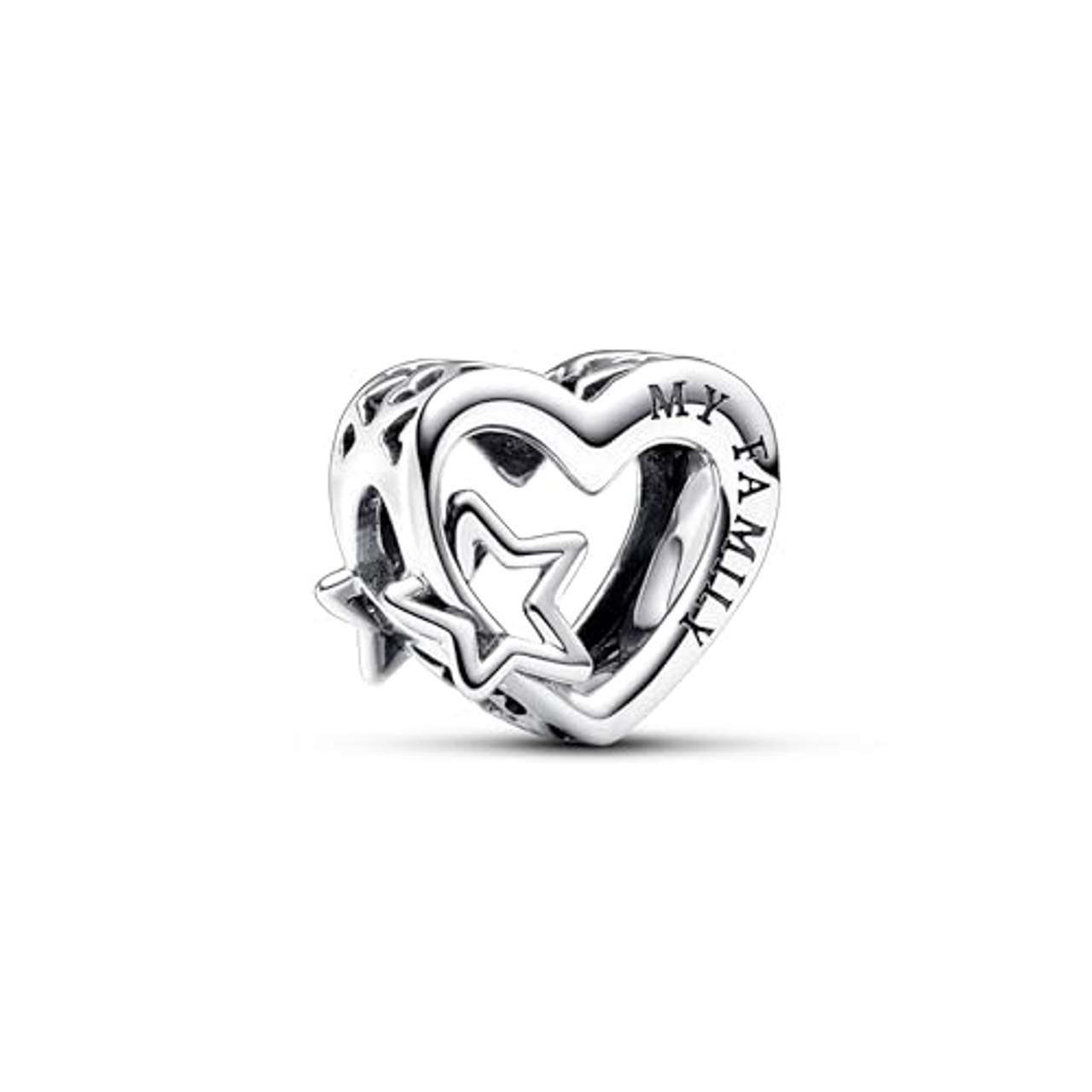 Über PANDORA Moments Offen gearbeitetes Familie Herz & Stern Charm