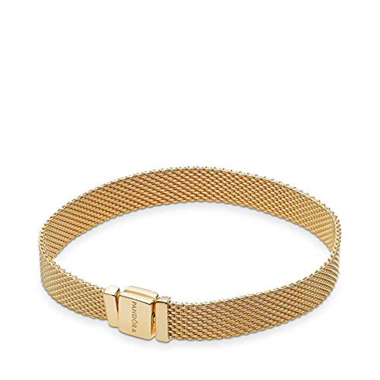 Pandora Reflexions Mesh ArmbandDrücke Deine Persönlichkeit mit dem neuen Pandora REFLEXIONS Armband aus. Das Design in Pandora Shine, 18 Karat vergoldete spezielle Metalllegierung, passt sich perfekt Deinem Handgelenk an. Ergänze Deinen neuen Armband-Klassiker mit zusätzlichen Pandora REFLEXIONS Clips und erschaffe so einen individuellen Look.Erhältlich in den Größen 15cm, 16cm, 17cm, 18cm, 19cm, 20cm und 21cm. Für Pandora REFLEXIONS empfehlen wir, dass das Armband näher am Handgelenk sitzt als bei Moments-Armbändern. Weil die Charms nicht so groß / dick wie normale Moments-Charms sind, benötigst Du nicht den gleichen zusätzlichen Abstand zwischen Handgelenk und Armband. Miss Dein Handgelenk und füge dann 1 cm hinzu. Am Ende ist es eine Frage des persönlichen Stils und Geschmacks, ob man einen engen oder lockeren Sitz wünscht.