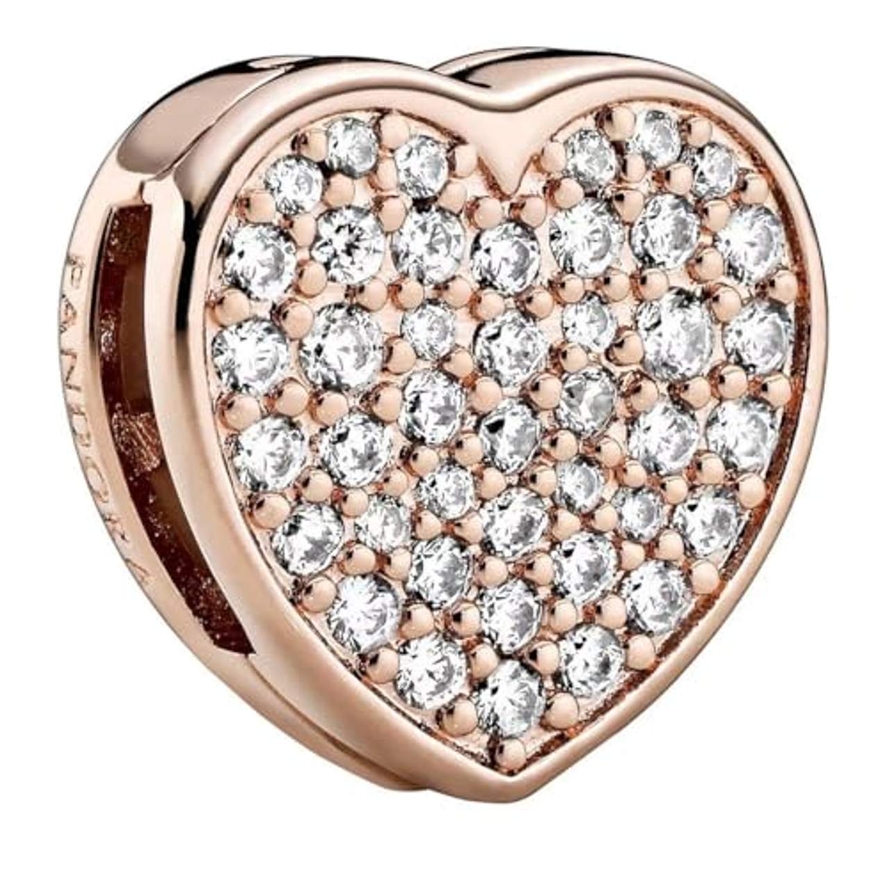 Pandora -Bead Charms Silber_vergoldetTrage Dein Herz an Deinem Handgelenk mit dieser liebevollen Ergänzung zu Pandora Reflexions. Dieses schimmernde Clip-Charm aus Pandora Rose (14 Karat rosévergoldete Metalllegierung) ist das ultimative Symbol der Liebe. Zeige der Welt Deine Gefühle mit 43 funkelnden, klaren Cubic Zirkonia im Brillant-Schliff in Pavé-Fassung auf der Vorderseite. Kombiniere dieses Charm gemeinsam mit anderen Reflexions Charms im gleichen Farbton zu einem klassischen Look oder trage es mit anderen Metallen, um einen modernen und kreativen Stil zu kreieren.
